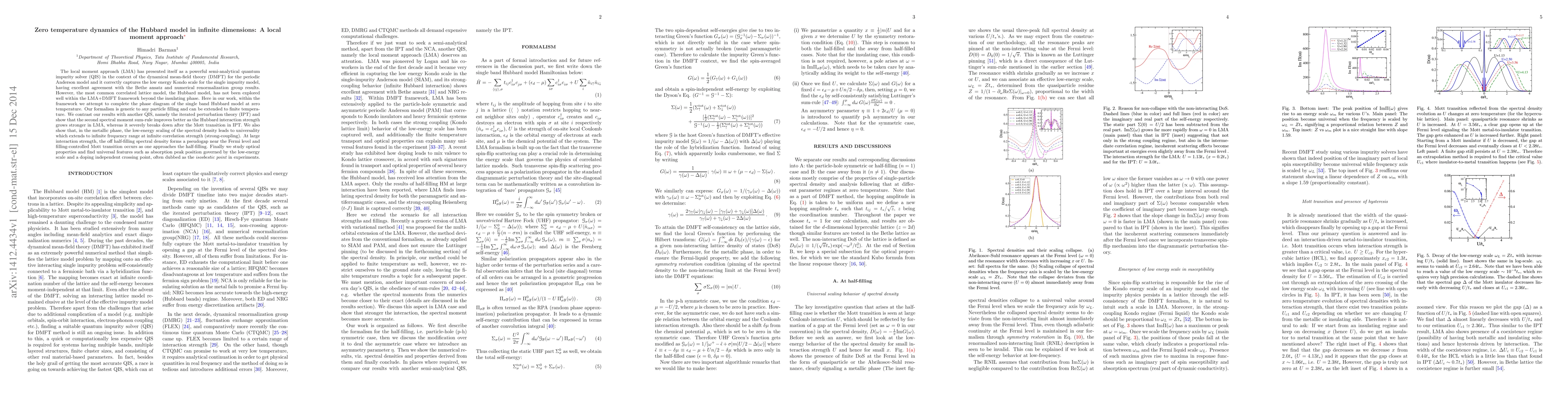 The local moment approach (LMA) has presented itself as a powerful semi-analytical quantum impurity solver (QIS) in the context of the dynamical mean-field theory (DMFT) for the periodic Anderson model and it correctly captures the low energy Kondo scale for the single impurity model, having excellent agreement with the Bethe ansatz and numerical renormalization group results. However, the most common correlated lattice model, the Hubbard model, has not been explored well within the LMA+DMFT framework beyond the insulating phase. Here in our work, within the framework we attempt to complete the phase diagram of the single band Hubbard model at zero temperature. Our formalism is generic to any particle filling and can be extended to finite temperature. We contrast our results with another QIS, namely the iterated perturbation theory (IPT) and show that the second spectral moment sum-rule improves better as the Hubbard interaction strength grows stronger in LMA, whereas it severely breaks down after the Mott transition in IPT. We also show that, in the metallic phase, the low-energy scaling of the spectral density leads to universality which extends to infinite frequency range at infinite correlation strength (strong-coupling). At large interaction strength, the off half-filling spectral density forms a pseudogap near the Fermi level and filling-controlled Mott transition occurs as one approaches the half-filling. Finally we study optical properties and find universal features such as absorption peak position governed by the low-energy scale and a doping independent crossing point, often dubbed as the "isosbestic point" in experiments.