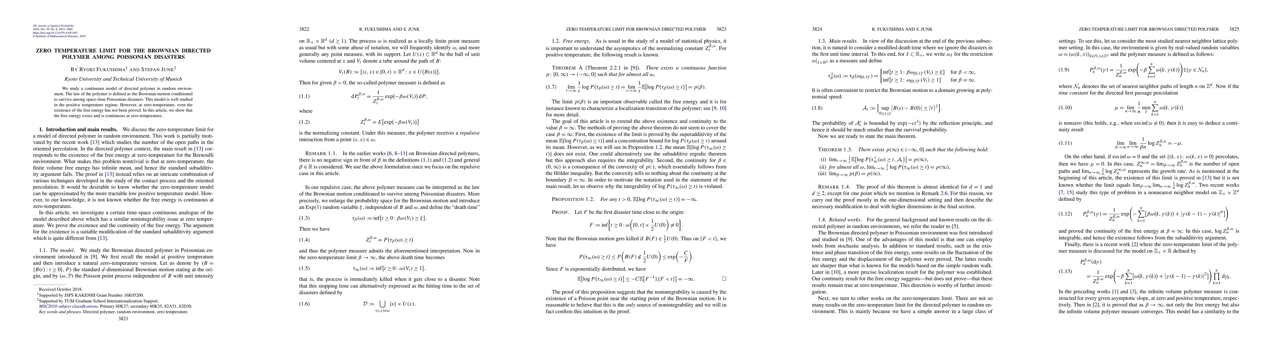Researchers prove that a key measure of free energy exists and is continuous at zero-temperature for a specific model of Brownian directed polymer in random environment, resolving an open question in the field.