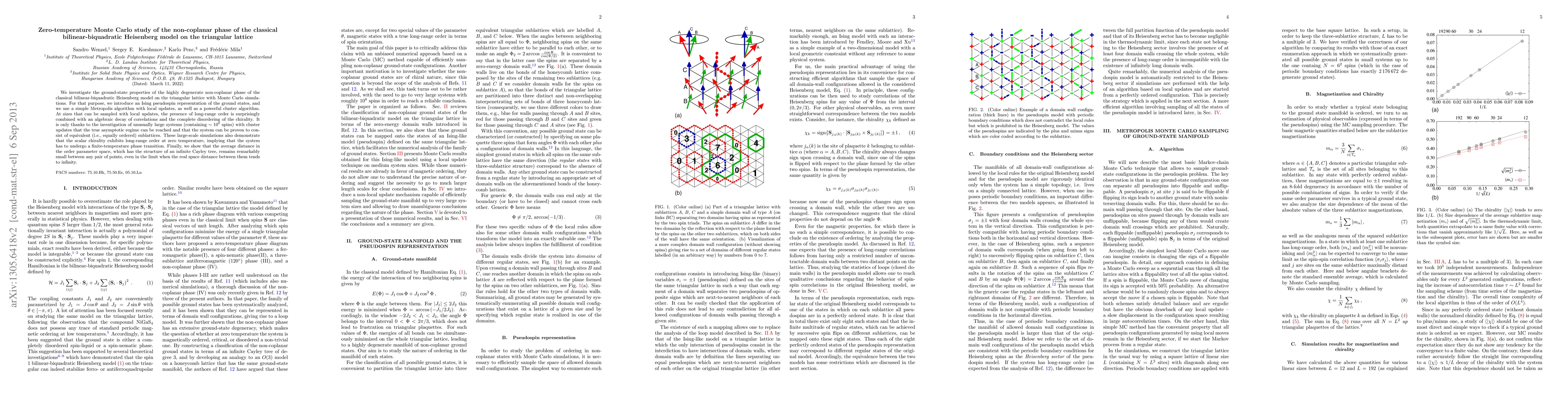 This paper uses Monte Carlo simulations to study the ground-state properties of the non-coplanar phase in the classical bilinear-biquadratic Heisenberg model on a triangular lattice. The simulations reveal long-range order combined with an algebraic decay of correlations, and large-scale simulations show that the system consists of equivalent sublattices, indicating a finite-temperature phase transition.