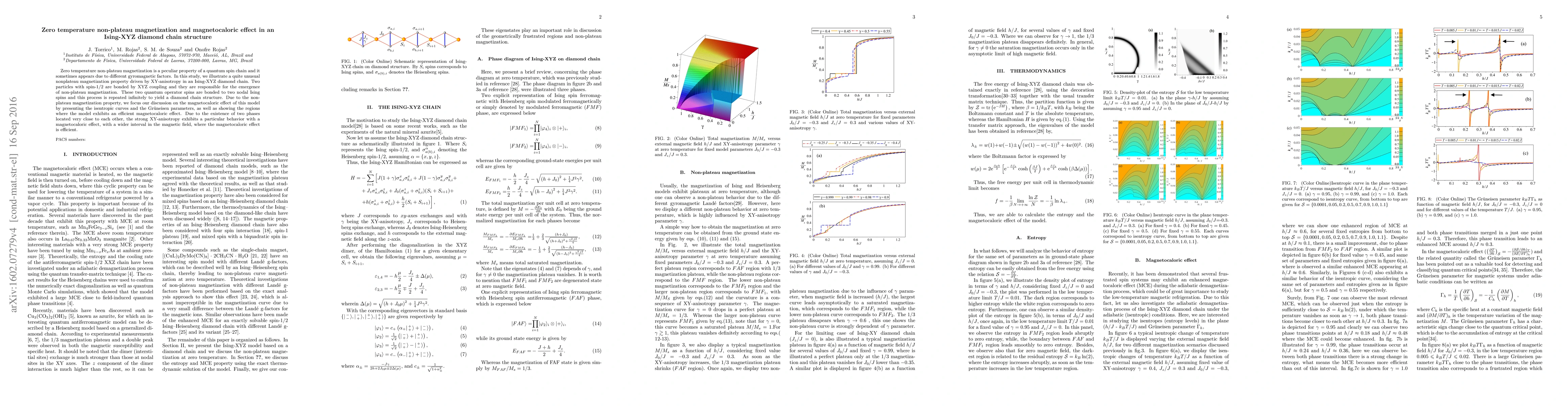 This study investigates a unique non-plateau magnetization property in an Ising-XYZ diamond chain structure, driven by XY-anisotropy between spin-1/2 particles. The research highlights the magnetocaloric effect in this model, showcasing efficient regions through isentropic curves and Gruneisen parameters.