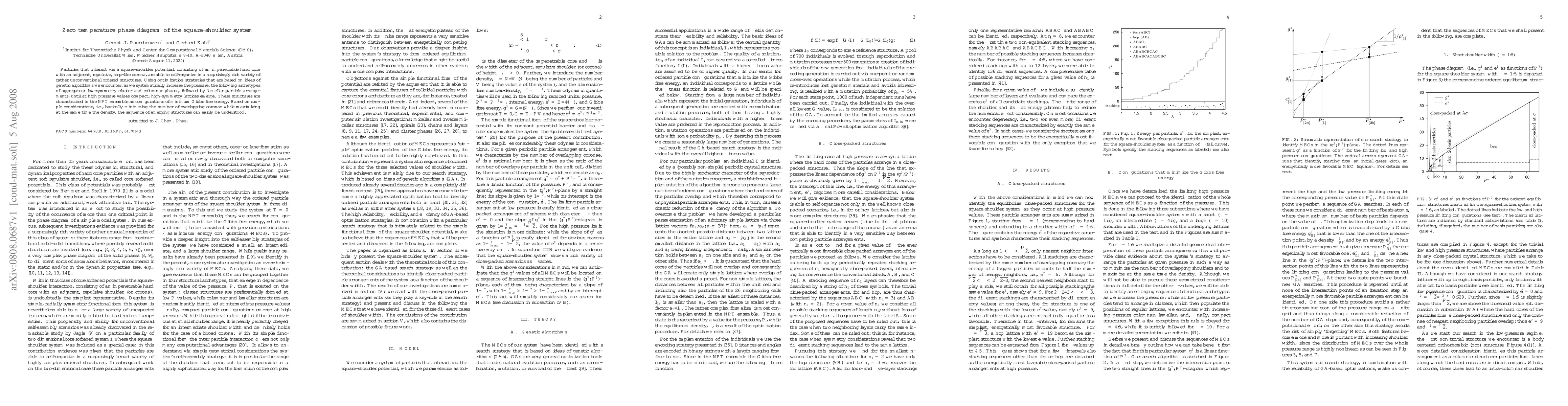 This paper explores the zero-temperature phase diagram of particles interacting via a square-shoulder potential, revealing a sequence of unconventional ordered structures from low-symmetry clusters to high-symmetry lattices. The study uses genetic algorithm optimization to identify these phases, which emerge as configurations of minimum Gibbs free energy.