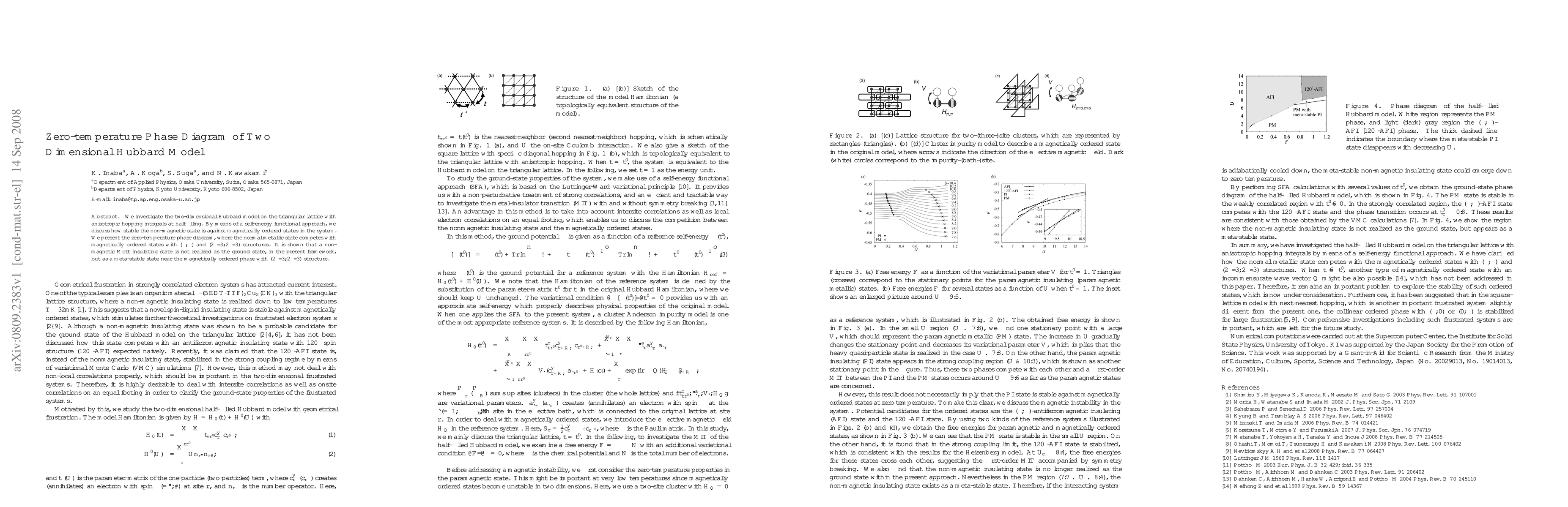 The paper investigates the zero-temperature phase diagram of the two-dimensional Hubbard model on a triangular lattice, finding that non-magnetic states compete with magnetically ordered states with $(\pi, \pi)$ and $(2\pi/3, 2\pi/3)$ structures, concluding that a non-magnetic Mott insulating state is meta-stable near the magnetically ordered phase.