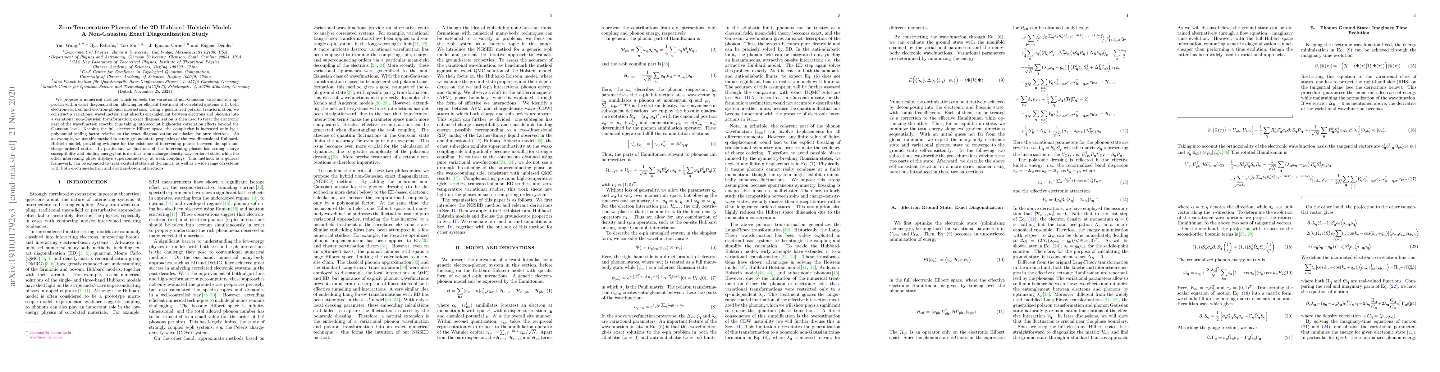 This paper introduces a novel numerical method combining variational non-Gaussian wavefunctions with exact diagonalization to study correlated systems with electron-electron and electron-phonon interactions. The method reveals new phases in the 2D Hubbard-Holstein model, including a charge-susceptible phase and a superconducting phase at weak couplings.