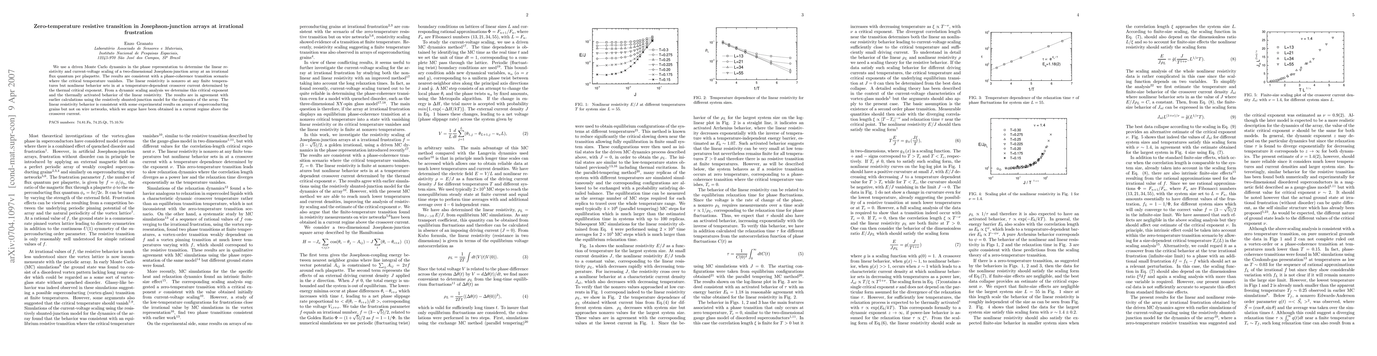 This paper investigates the resistive transition in Josephson-junction arrays at irrational flux, finding a phase-coherence transition with vanishing critical temperature. The linear resistivity remains nonzero but nonlinear behavior emerges at a temperature-dependent crossover current, consistent with dynamic scaling analysis and earlier theoretical models.