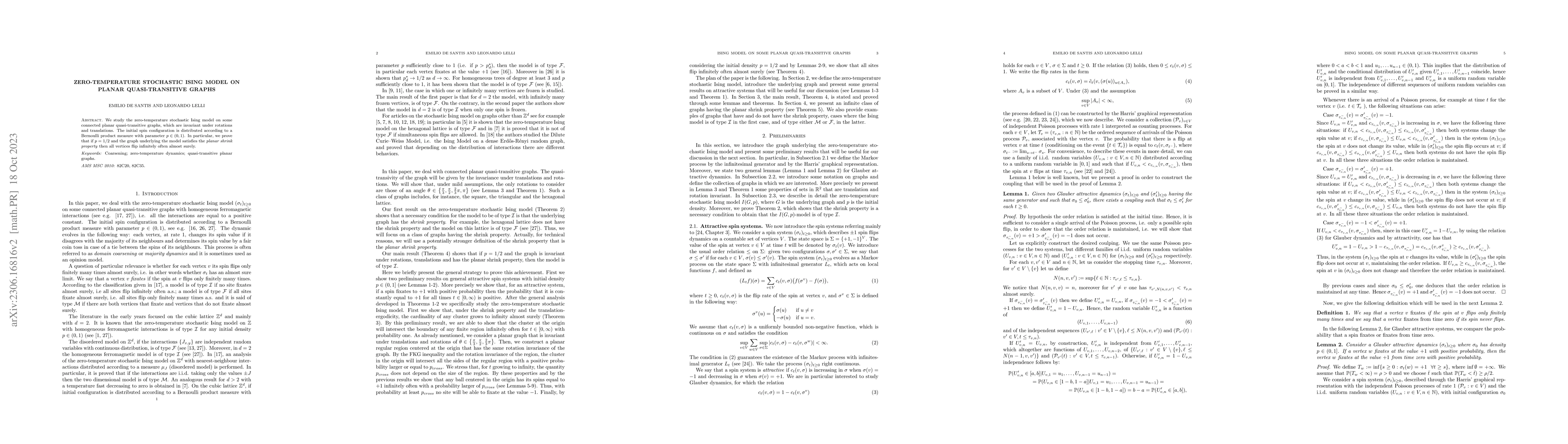 This paper investigates the zero-temperature stochastic Ising model on planar quasi-transitive graphs, demonstrating that for $p=1/2$ and graphs satisfying the planar shrink property, each vertex will flip its spin infinitely often almost surely.