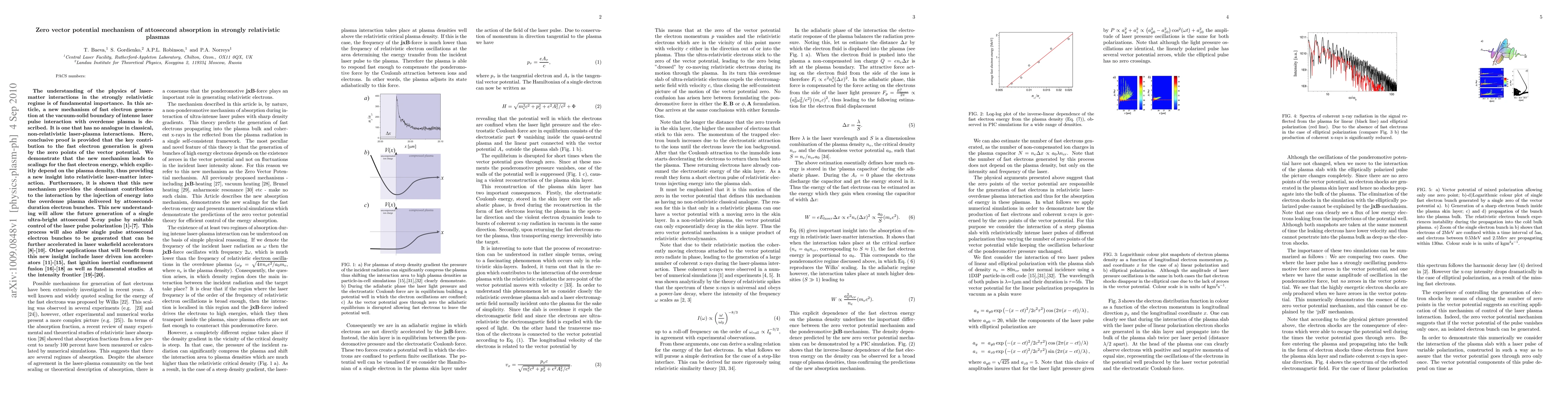 The understanding of the physics of lasermatter interactions in the strongly relativistic regime is of fundamental importance. In this article, a new mechanism of fast electron generation at the vacuum-solid boundary of intense laser pulse interaction with overdense plasma is described. It is one that has no analogue in classical, non-relativistic laser-plasma interactions. Here, conclusive proof is provided that the key contribution to the fast electron generation is given by the zero points of the vector potential. We demonstrate that the new mechanism leads to scalings for the fast electron energy, which explicitly depend on the plasma density, thus providing a new insight into relativistic laser-matter interaction. Furthermore, it is shown that this new mechanism provides the dominant contribution to the interaction by the injection of energy into the overdense plasma delivered by attosecondduration electron bunches. This new understanding will allow the future generation of a single ultra-bright attosecond X-ray pulse by suitable control of the laser pulse polarization [1]-[7]. This process will also allow single pulse attosecond electron bunches to be generated that can be further accelerated in laser wakefield accelerators [8]-[10]. Other applications that will benefit from this new insight include laser driven ion accelerators [11]-[15], fast ignition inertial confinement fusion [16]-[18] as well as fundamental studies at the intensity frontier [19]-[20].
