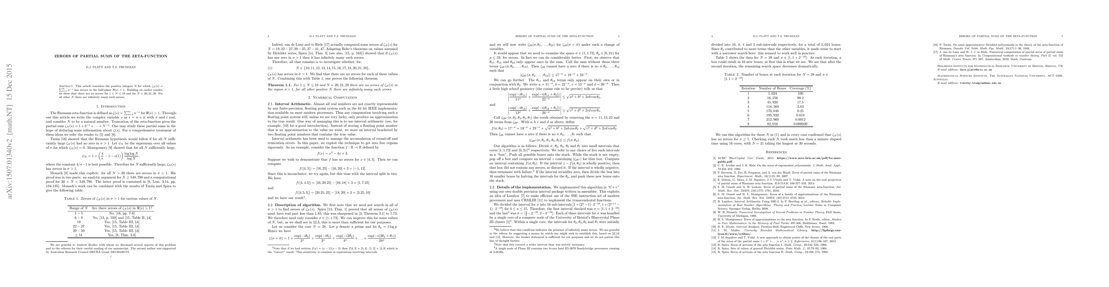 This article considers the positive integers $N$ for which $\zeta_{N}(s) = \sum_{n=1}^{N} n^{-s}$ has zeroes in the half-plane $\Re(s)>1$. Building on earlier results, we show that there are no zeroes for $1\leq N\leq 18$ and for $N=20, 21, 28$. For all other $N$ there are infinitely many zeroes.