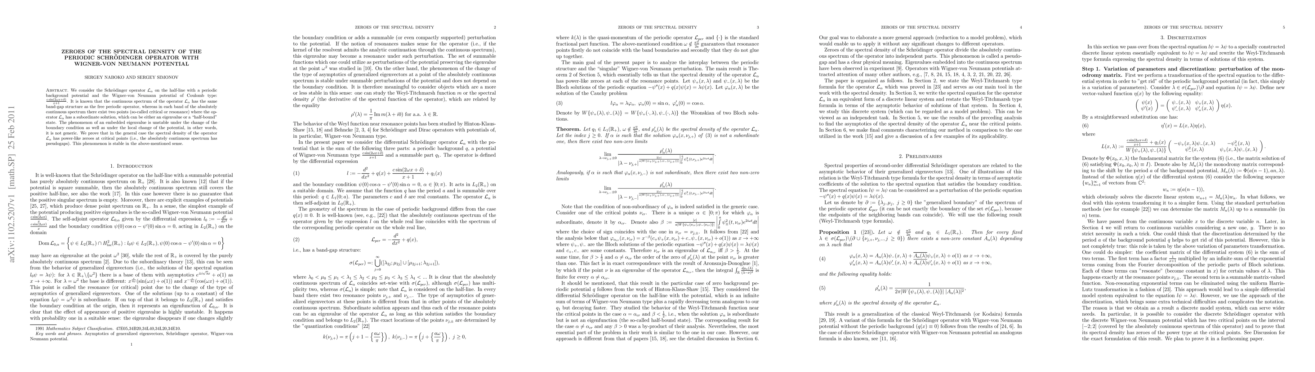 We consider the Schroedinger operator L_{\alpha} on the half-line with a periodic background potential and the Wigner-von Neumann potential of Coulomb type: csin(2\omega x+d)/(x+1). It is known that the continuous spectrum of the operator L_{\alpha} has the same band-gap structure as the free periodic operator, whereas in each band of the absolutely continuous spectrum there exist two points (so-called critical or resonance) where the operator L_{\alpha} has a subordinate solution, which can be either an eigenvalue or a `half-bound' state. The phenomenon of an embedded eigenvalue is unstable under the change of the boundary condition as well as under the local change of the potential, in other words, it is not generic. We prove that in the general case the spectral density of the operator L_{\alpha} has power-like zeroes at critical points (i.e., the absolutely continuous spectrum has pseudogaps). This phenomenon is stable in the above-mentioned sense.