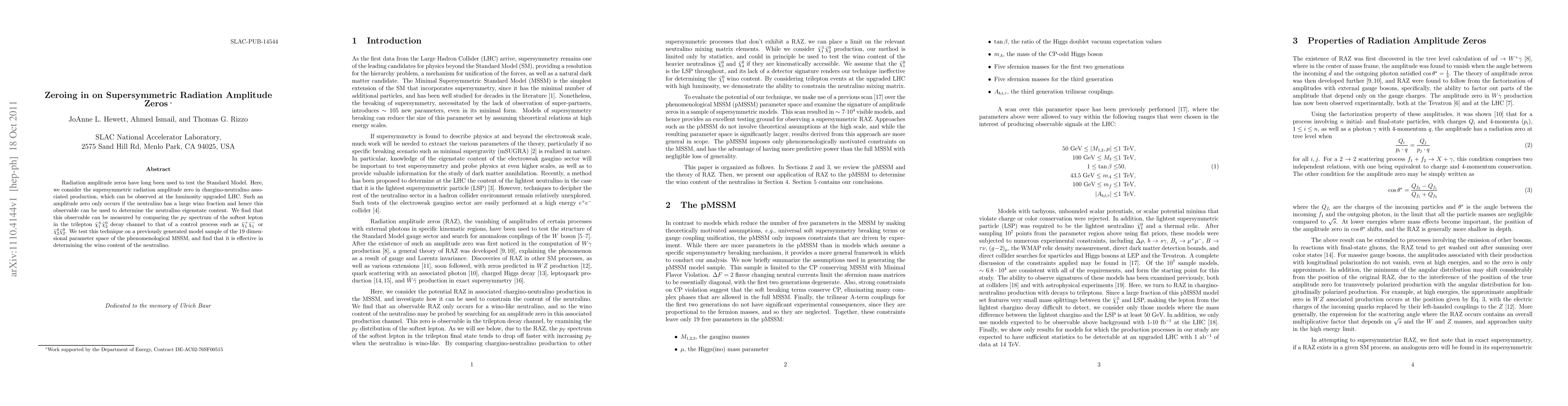 This paper investigates the supersymmetric radiation amplitude zero in chargino-neutralino production, suggesting it can reveal the neutralino's wino fraction. The technique involves comparing the p_T spectrum of the softest lepton in trilepton decay to control processes, demonstrating its effectiveness in the phenomenological MSSM parameter space.