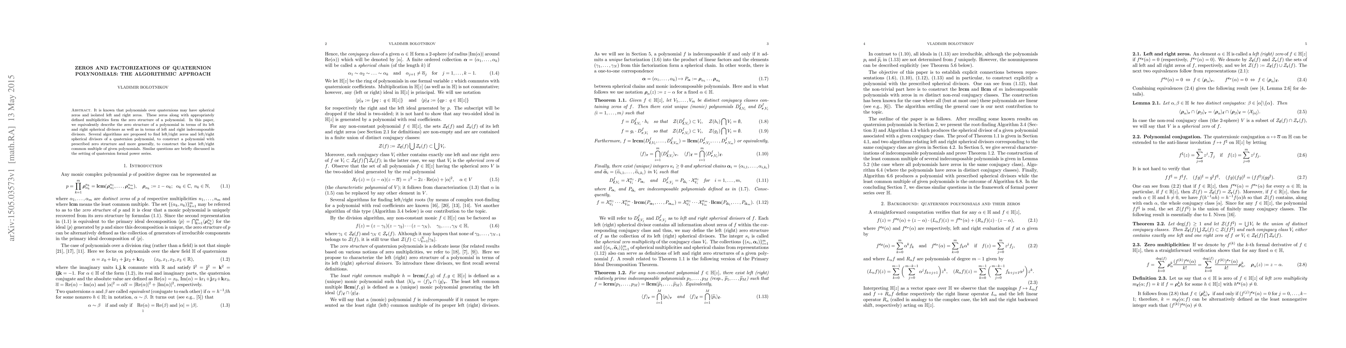 A paper proposes algorithms to find zeros and divisors of quaternion polynomials, enabling the construction of polynomials with specific zero structures and finding common multiples, with implications for understanding polynomial properties.