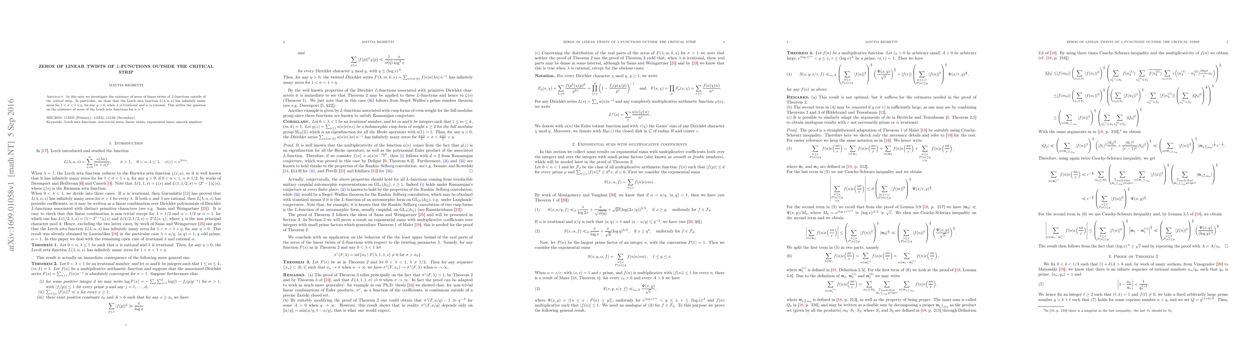 This paper investigates the zeros of linear twists of $L$-functions outside the critical strip, proving that the Lerch zeta function $L(\lambda,\alpha,s)$ has infinitely many zeros for $1<\sigma<1+\eta$ when $\lambda$ is irrational and $\alpha$ is rational, thus resolving the question of zero existence for $\sigma>1$.