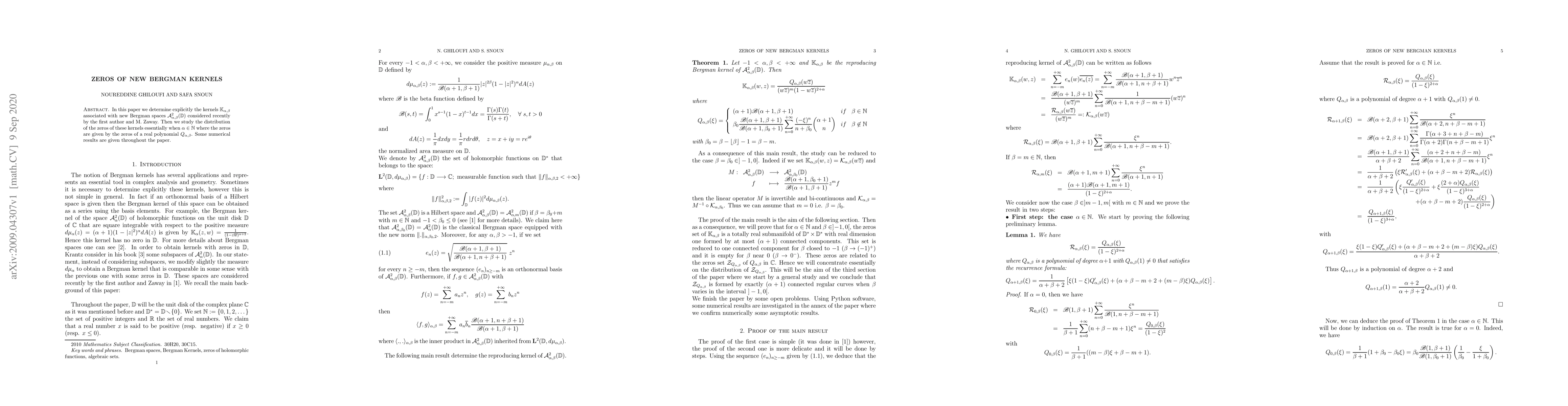 This paper explicitly determines kernels associated with new Bergman spaces and studies their zeros for a specific polynomial, providing numerical results.