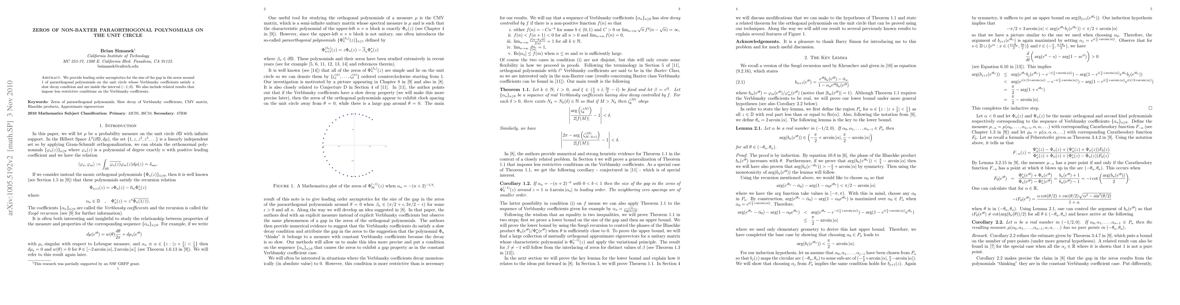 This paper provides asymptotics for the zeros of non-Baxter paraorthogonal polynomials on the unit circle under slow decay conditions, with implications for understanding polynomial behavior around 1.