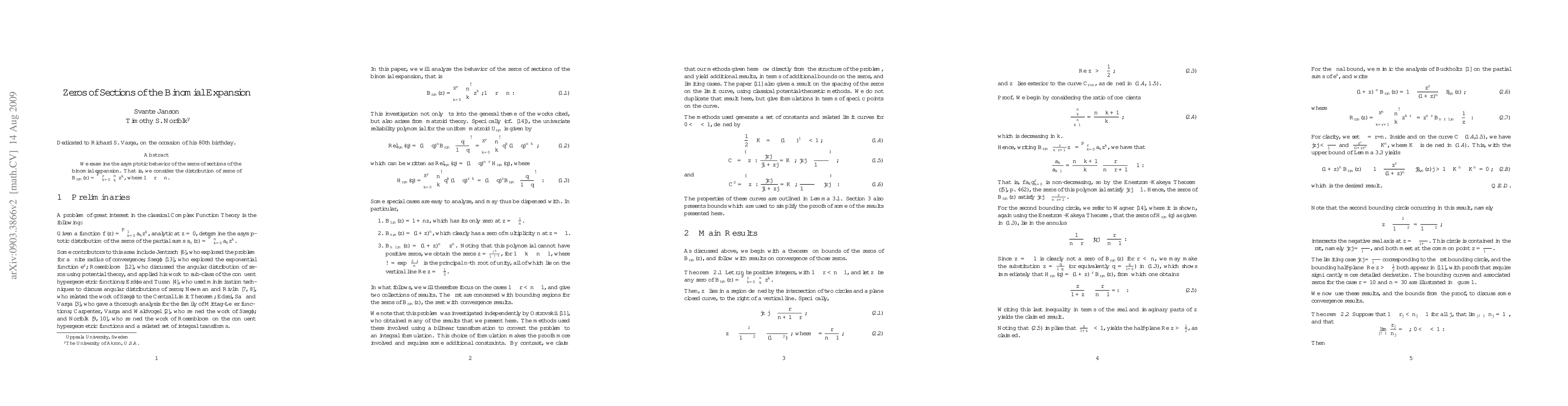 This paper examines the distribution of zeros in sections of the binomial expansion, finding asymptotic behavior for the number of zeros as the degree r approaches n. The research provides insights into the complex pattern of these zeros.