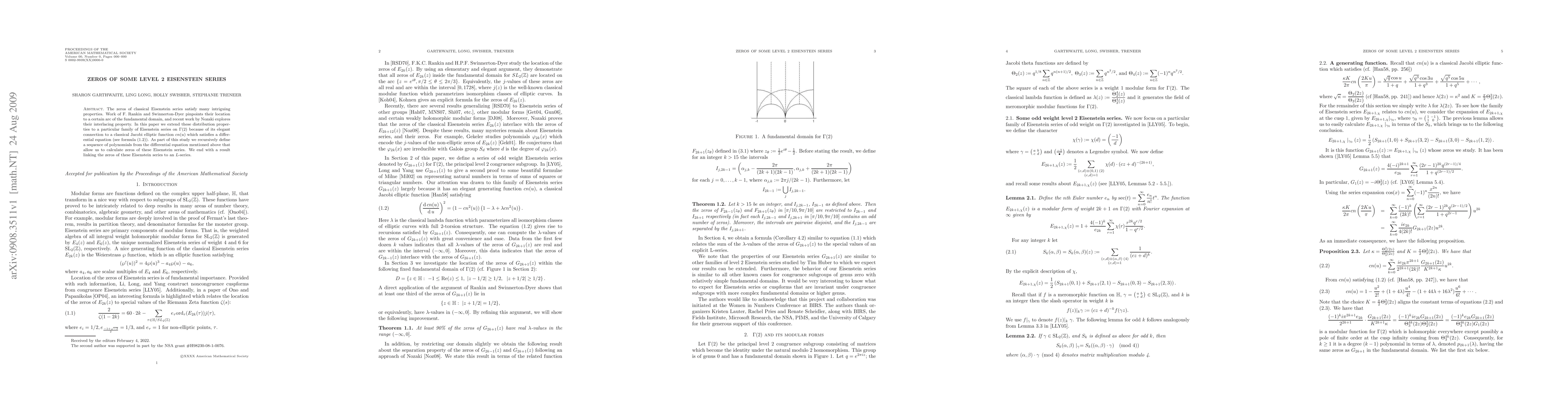 This paper extends the distribution properties of classical Eisenstein series to a specific family on Gamma(2), leveraging a connection to the Jacobi elliptic function cn(u). It defines a sequence of polynomials to calculate zeros and concludes with a link between these zeros and an L-series.