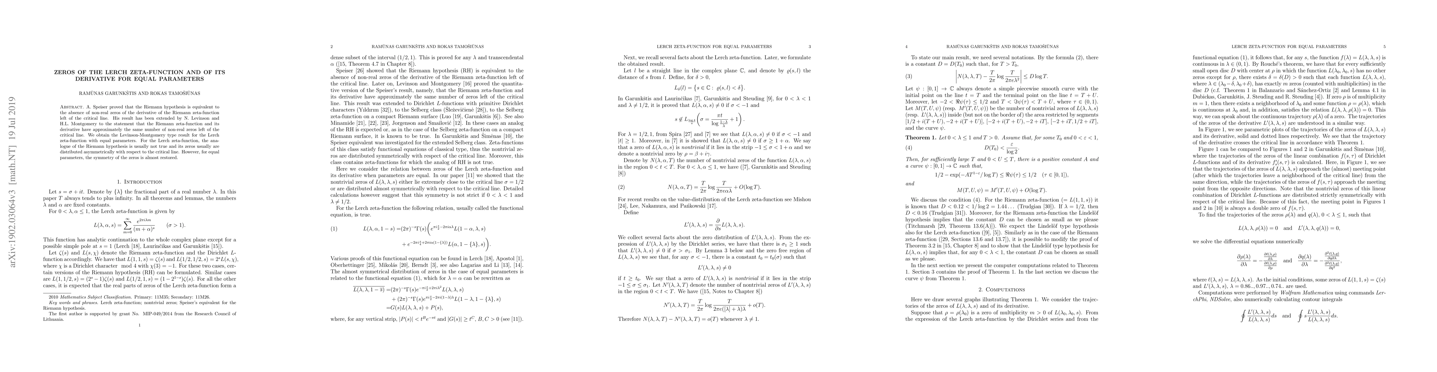 A. Speiser proved that the Riemann hypothesis is equivalent to the absence of non-real zeros of the derivative of the Riemann zeta-function left of the critical line. His result has been extended by N. Levinson and H.L. Montgomery to the statement that the Riemann zeta-function and its derivative have approximately the same number of non-real zeros left of the critical line. We obtain the Levinson-Montgomery type result for the Lerch zeta-function with equal parameters. For the Lerch zeta-function, the analogue of the Riemann hypothesis is usually not true and its zeros usually are distributed asymmetrically with respect to the critical line. However, for equal parameters, the symmetry of the zeros is almost restored.