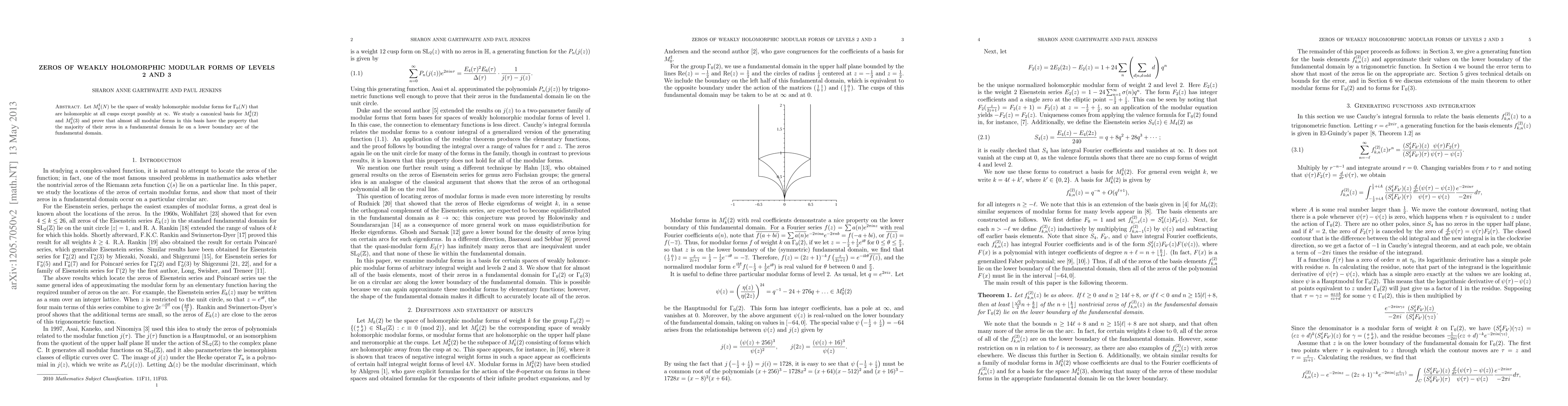 This paper investigates canonical bases for weakly holomorphic modular forms of levels 2 and 3, demonstrating that most forms in these bases exhibit a majority of their zeros along a lower boundary arc in a fundamental domain.