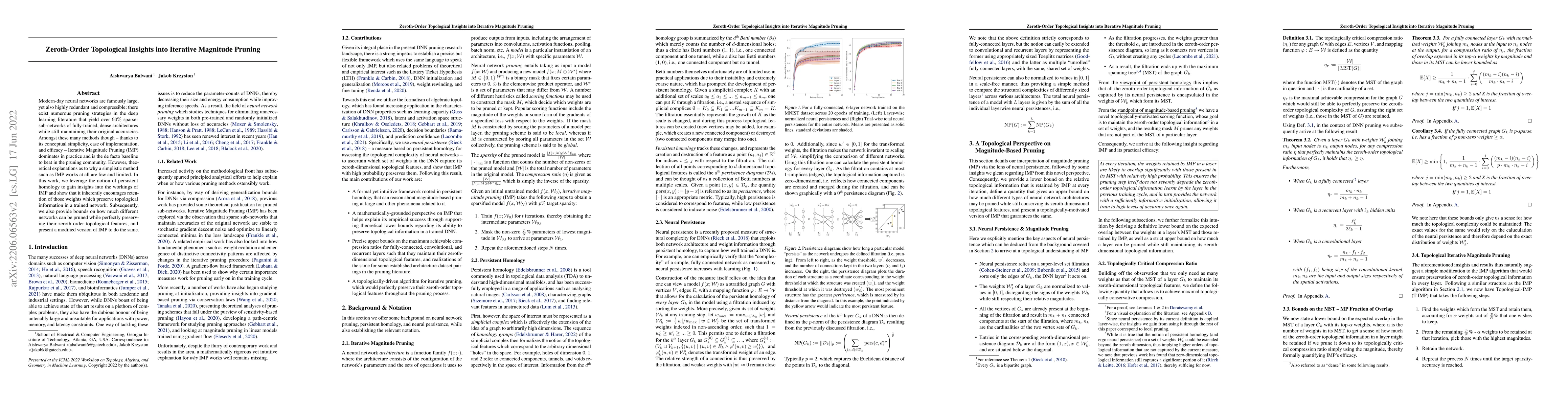 Modern-day neural networks are famously large, yet also highly redundant and compressible; there exist numerous pruning strategies in the deep learning literature that yield over 90% sparser sub-networks of fully-trained, dense architectures while still maintaining their original accuracies. Amongst these many methods though -- thanks to its conceptual simplicity, ease of implementation, and efficacy -- Iterative Magnitude Pruning (IMP) dominates in practice and is the de facto baseline to beat in the pruning community. However, theoretical explanations as to why a simplistic method such as IMP works at all are few and limited. In this work, we leverage the notion of persistent homology to gain insights into the workings of IMP and show that it inherently encourages retention of those weights which preserve topological information in a trained network. Subsequently, we also provide bounds on how much different networks can be pruned while perfectly preserving their zeroth order topological features, and present a modified version of IMP to do the same.