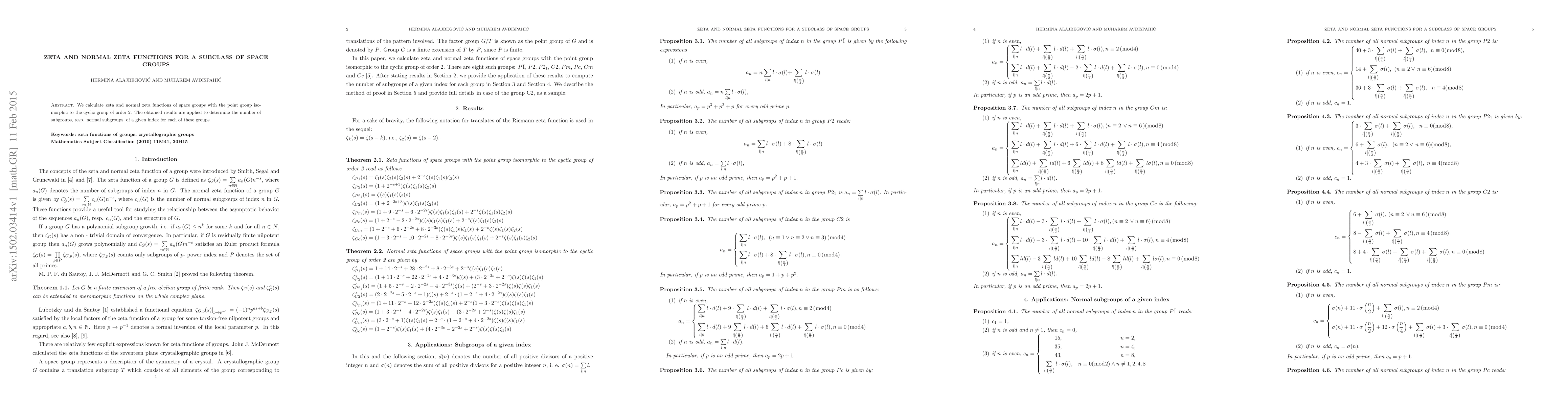 This paper calculates zeta and normal zeta functions for space groups with a point group isomorphic to the cyclic group of order 2, and applies the results to determine the number of subgroups and normal subgroups of a given index for these groups.