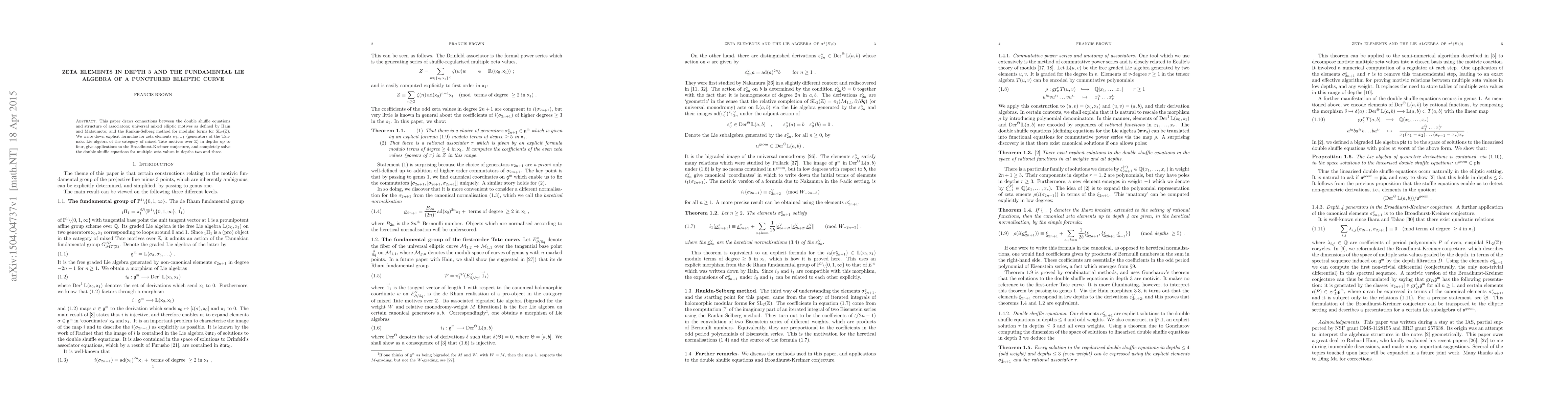 This paper connects the double shuffle equations to associators and universal mixed elliptic motives, providing explicit formulae for zeta elements in depths up to four and solving the double shuffle equations for depths two and three, with applications to the Broadhurst-Kreimer conjecture.