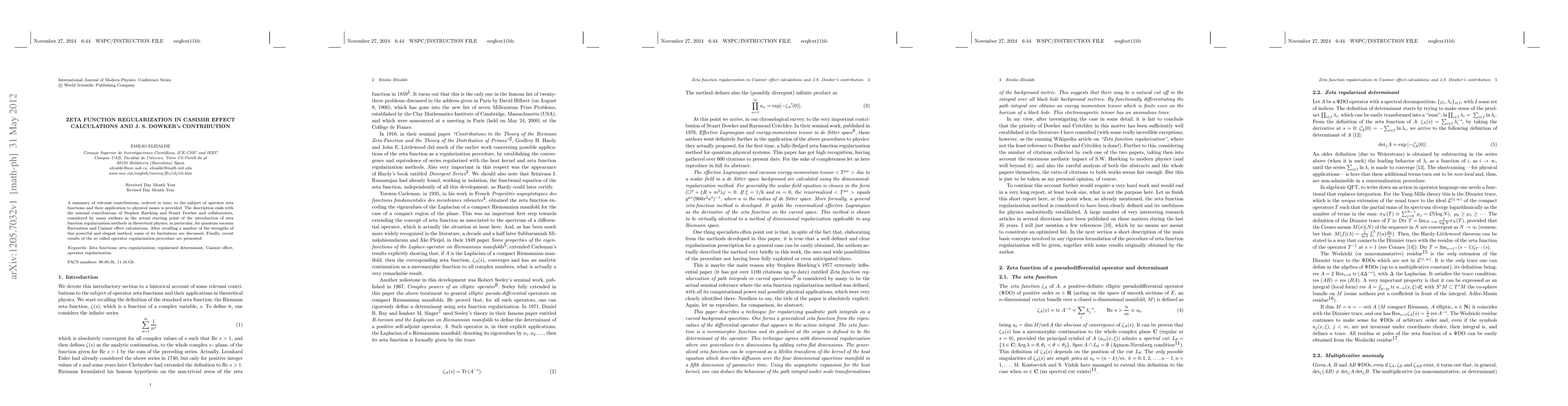 This paper reviews the historical development of zeta function regularization methods, particularly highlighting J.S. Dowker's contributions, and their application to the Casimir effect. It discusses the strengths and limitations of this method, and presents recent advancements in operator regularization procedures.