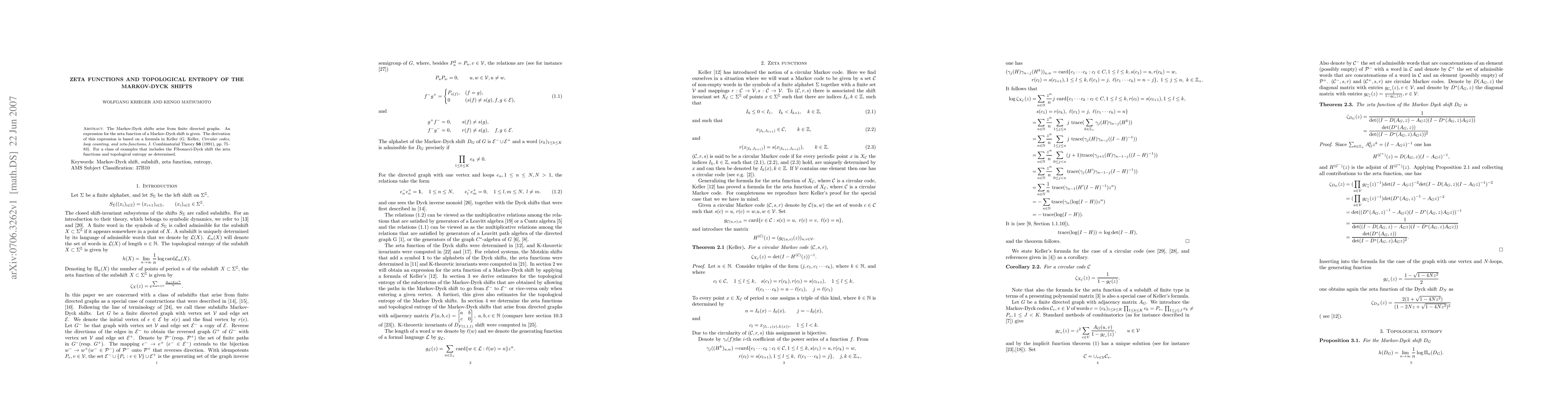 This paper provides an expression for the zeta function of Markov-Dyck shifts derived from finite directed graphs, based on Keller's formula. It determines the zeta functions and topological entropy for a class of examples including the Fibonacci-Dyck shift.