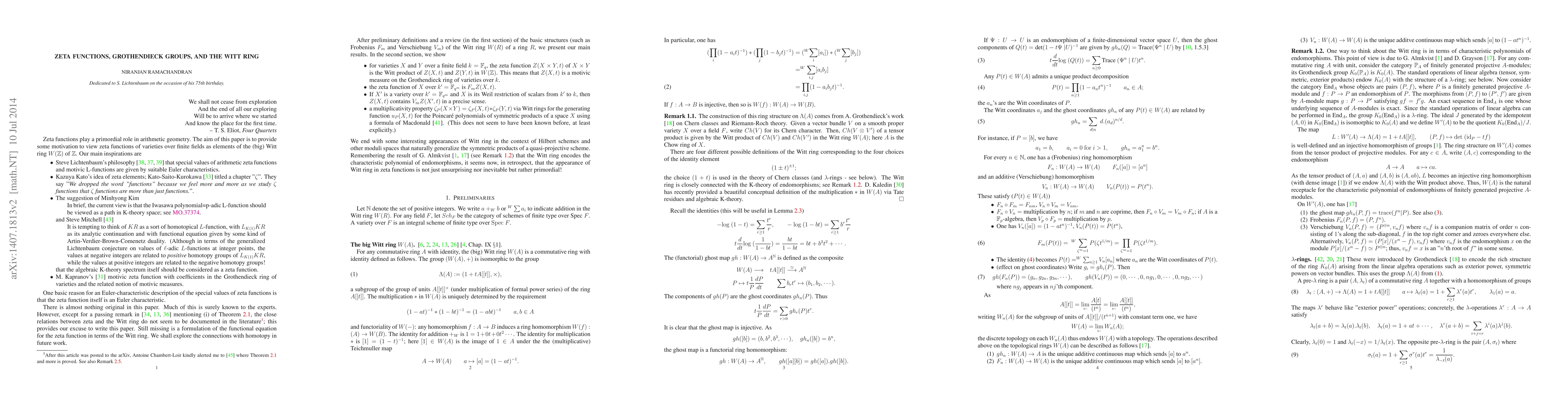 We prove some results connecting the zeta functions of varieties over finite fields with the big Witt ring over $\mathbb Z$. We explore relations with motivic measures and a classical formula of Macdonald on invariants of symmetric products of a variety.