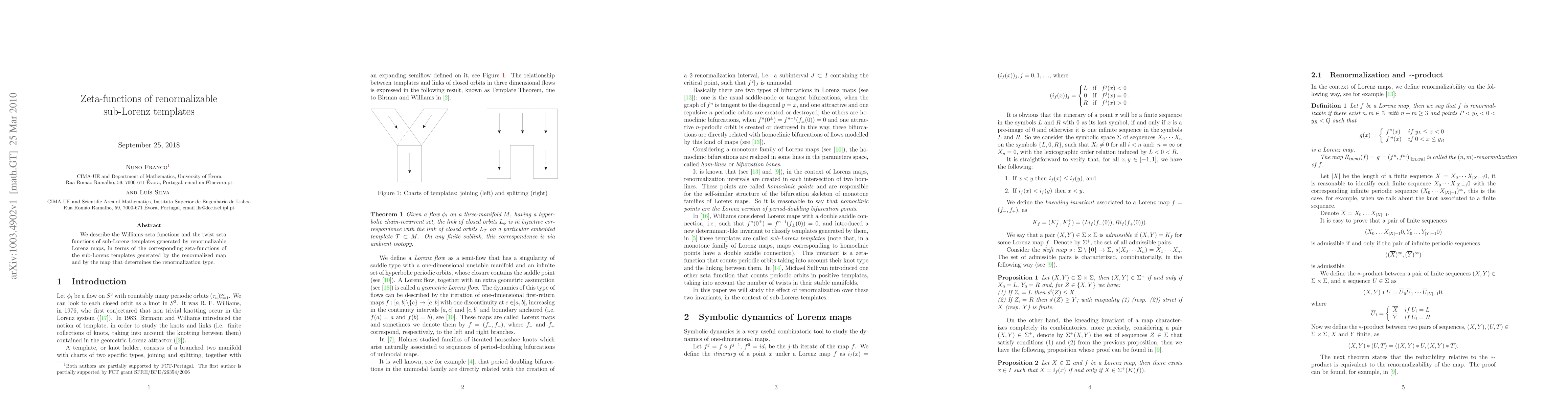 The paper introduces a factorization result for Williams zeta functions of sub-Lorenz templates generated by renormalizable Lorenz maps, linking them through a ∗-product structure in the symbolic space of kneading invariants.
