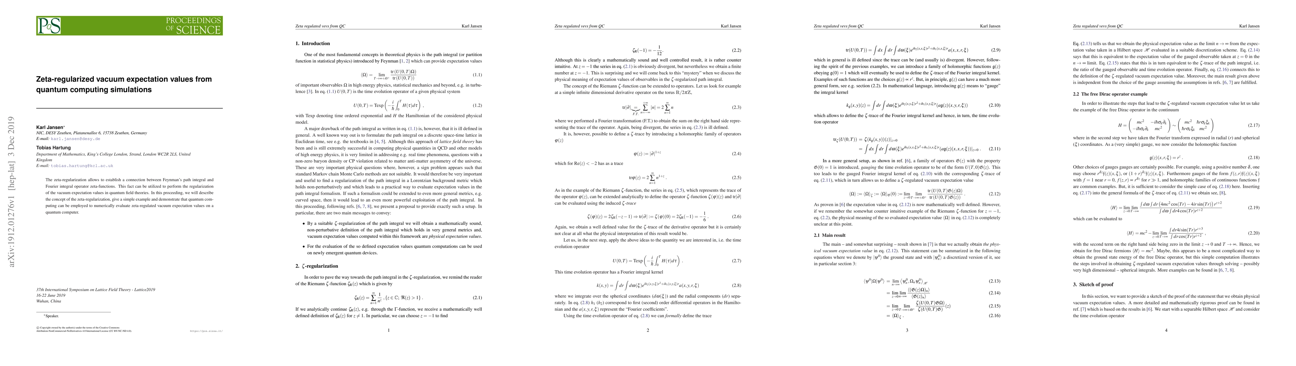 This paper explores the zeta-regularization method to connect Feynman's path integral with Fourier integral operator zeta-functions, enabling regularization of vacuum expectation values in quantum field theories. It demonstrates the potential of quantum computing to numerically evaluate these values on a quantum computer.