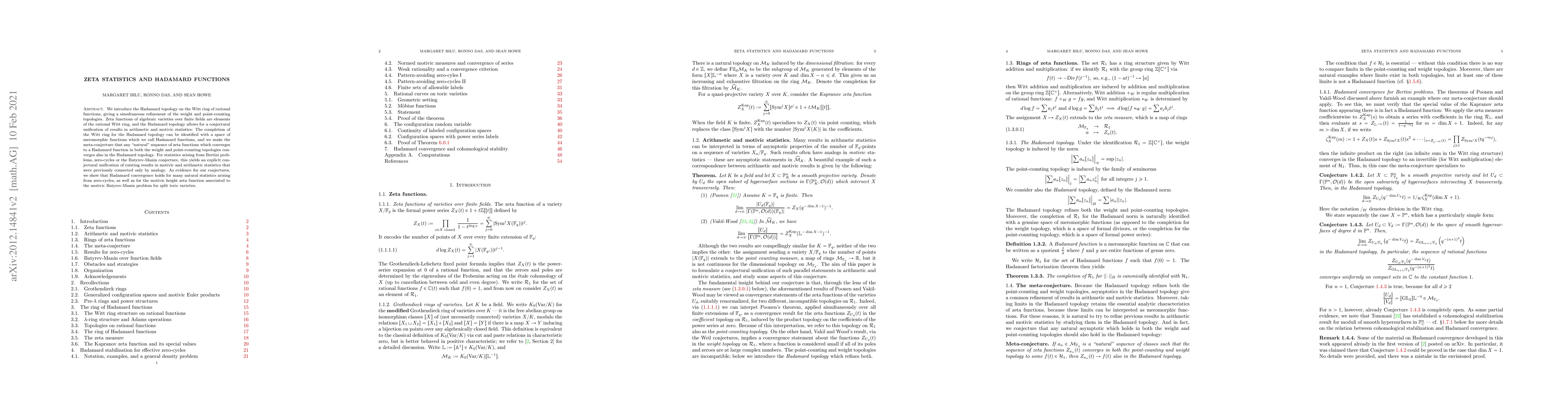 We introduce the Hadamard topology on the Witt ring of rational functions, giving a simultaneous refinement of the weight and point-counting topologies. Zeta functions of algebraic varieties over finite fields are elements of the rational Witt ring, and the Hadamard topology allows for a conjectural unification of results in arithmetic and motivic statistics: The completion of the Witt ring for the Hadamard topology can be identified with a space of meromorphic functions which we call Hadamard functions, and we make the meta-conjecture that any "natural" sequence of zeta functions which converges to a Hadamard function in both the weight and point-counting topologies converges also in the Hadamard topology. For statistics arising from Bertini problems, zero-cycles or the Batyrev-Manin conjecture, this yields an explicit conjectural unification of existing results in motivic and arithmetic statistics that were previously connected only by analogy. As evidence for our conjectures, we show that Hadamard convergence holds for many natural statistics arising from zero-cycles, as well as for the motivic height zeta function associated to the motivic Batyrev-Manin problem for split toric varieties.