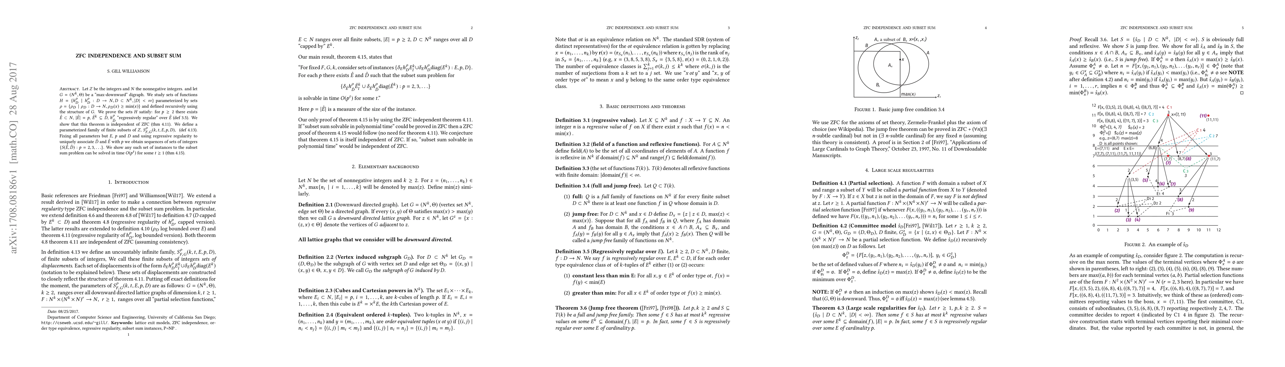 We study recursively defined functions associated with directed graphs on the k dimensional nonnegative integral lattice. The existence of certain combinatorial structures associated with these function classes are shown to be independent of the ZFC axioms of mathematics. These structures, in a natural way, give rise to sets of instances to the subset sum problem. We use this connection to make some observations about ZFC independence and the subset sum problem.