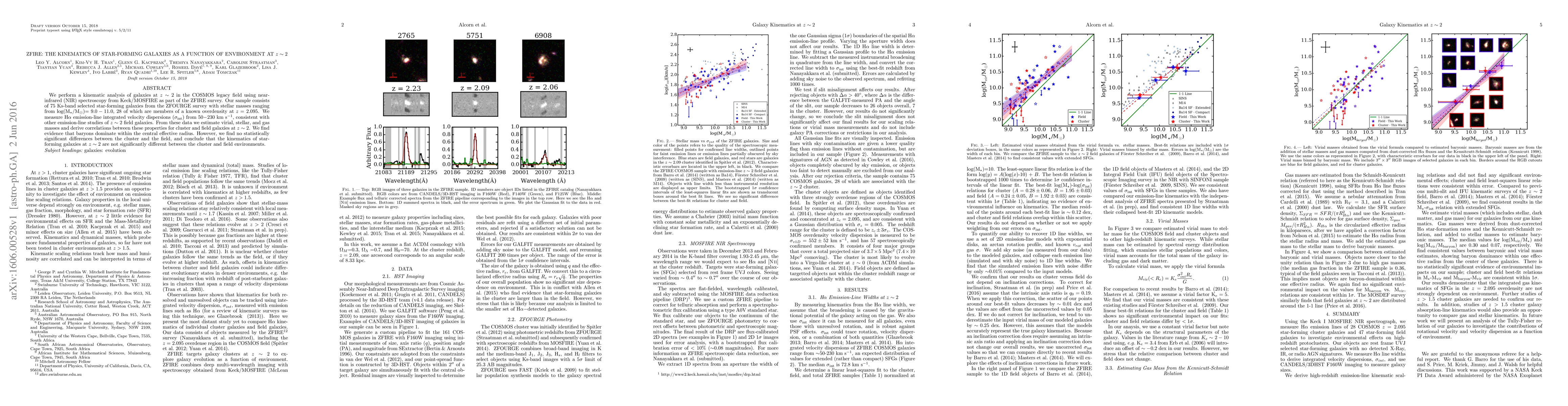 The ZFIRE survey analyzes the kinematics of star-forming galaxies at $z\sim2$ using Keck/MOSFIRE data, finding no significant differences in the kinematics between galaxies in clusters and those in the field. Despite baryons dominating within the central effective radius, the integrated velocity dispersions are consistent across environments.