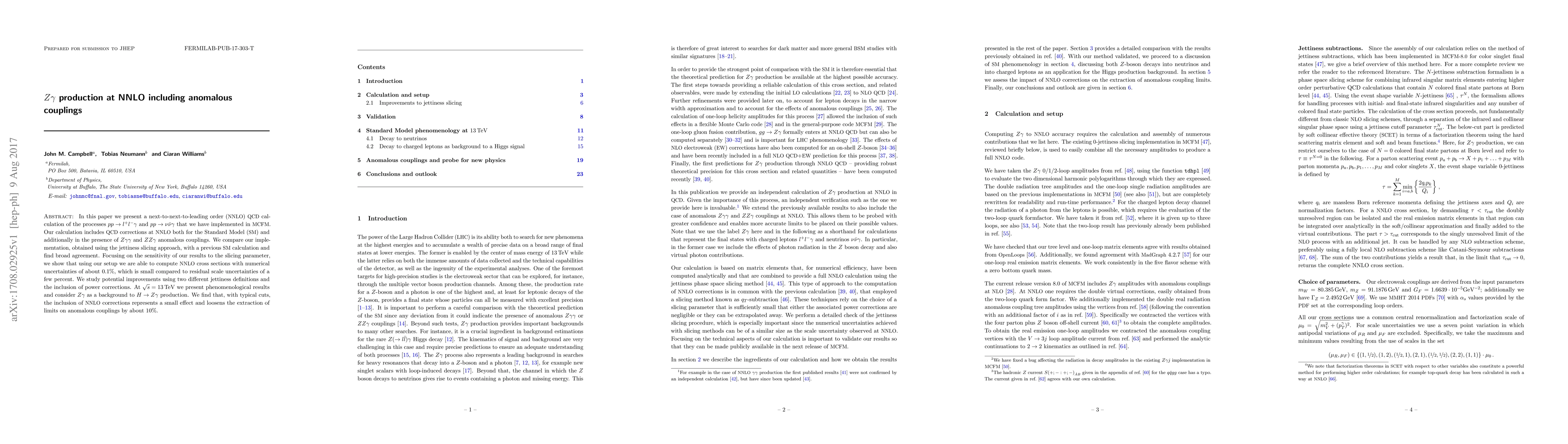 Researchers calculate Zgamma production at next-to-next-to-leading order (NNLO) with anomalous couplings in Standard Model and beyond, achieving small numerical uncertainties of 0.1%.