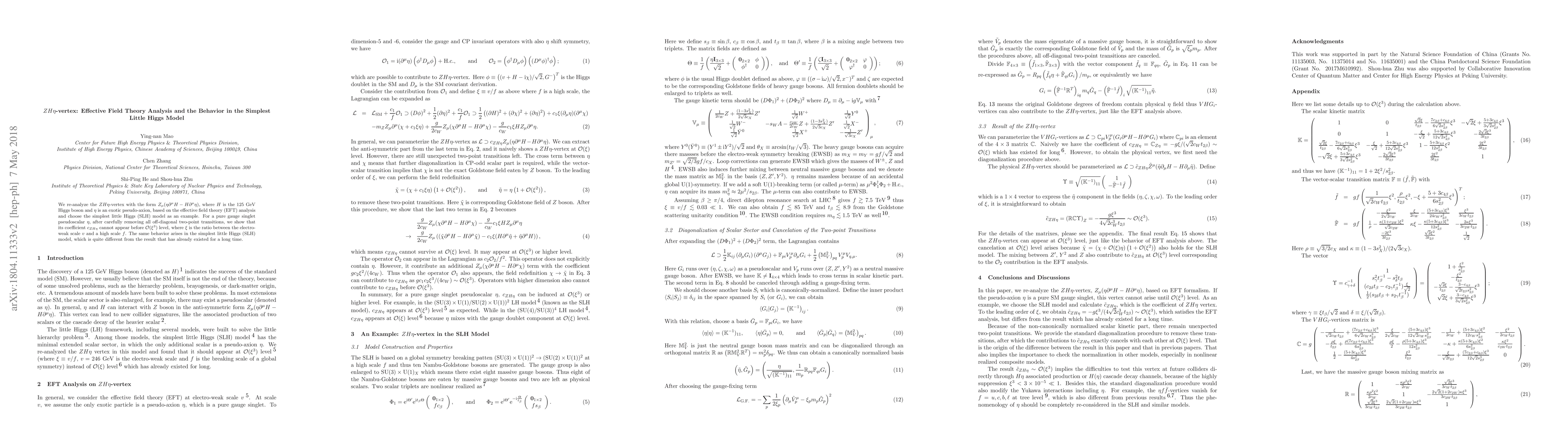 We re-analyze the $ZH\eta$-vertex with the form $Z_{\mu}(\eta\partial^{\mu}H-H\partial^{\mu}\eta)$, where $H$ is the 125 GeV Higgs boson and $\eta$ is an exotic pseudo-axion, based on the effective field theory (EFT) analysis and choose the simplest little Higgs (SLH) model as an example. For a pure gauge singlet pseudoscalar $\eta$, after carefully removing all off-diagonal two-point transitions, we show that its coefficient $c_{ZH\eta}$ cannot appear before $\mathcal{O}(\xi^3)$ level, where $\xi$ is the ratio between the electro-weak scale $v$ and a high scale $f$. The same behavior arises in the simplest little Higgs (SLH) model, which is quite different from the result that has already existed for a long time.