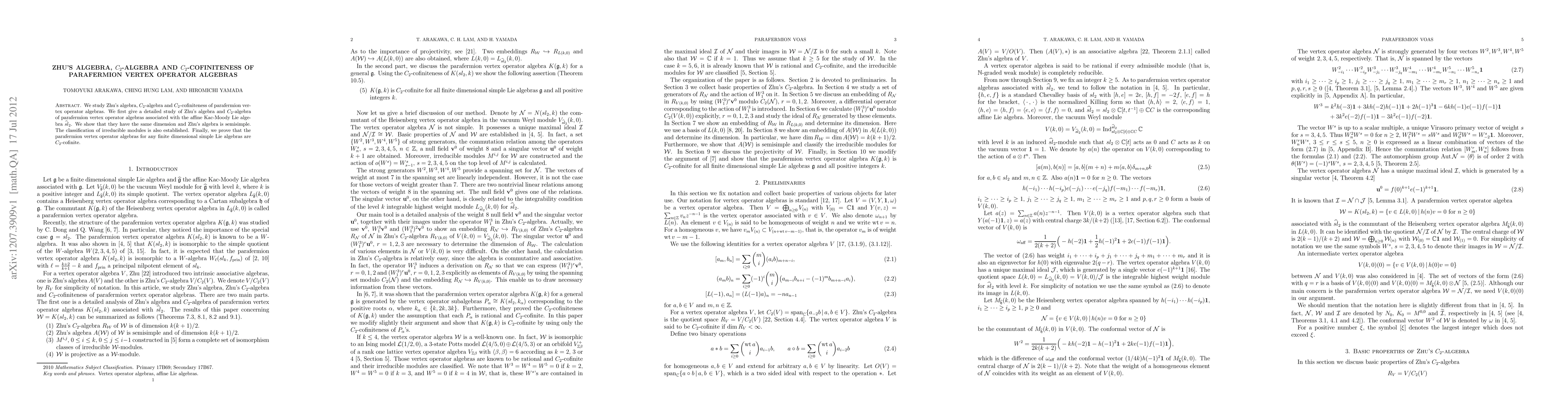 This paper determines Zhu's algebra and C_2-algebra for parafermion vertex operator algebras associated with sl_2, and proves the C_2-cofiniteness for such algebras across all finite-dimensional simple Lie algebras.