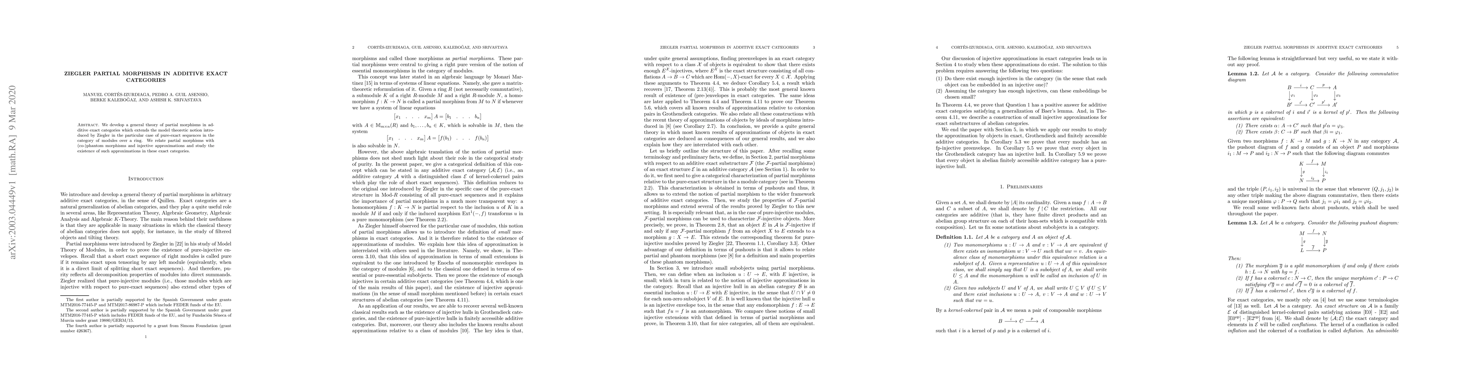 This paper develops a theory of partial morphisms in additive exact categories, extending Ziegler's model-theoretic notion from pure-exact sequences in module categories. It also investigates the relationships between partial morphisms, phantom morphisms, and injective approximations within these categories.