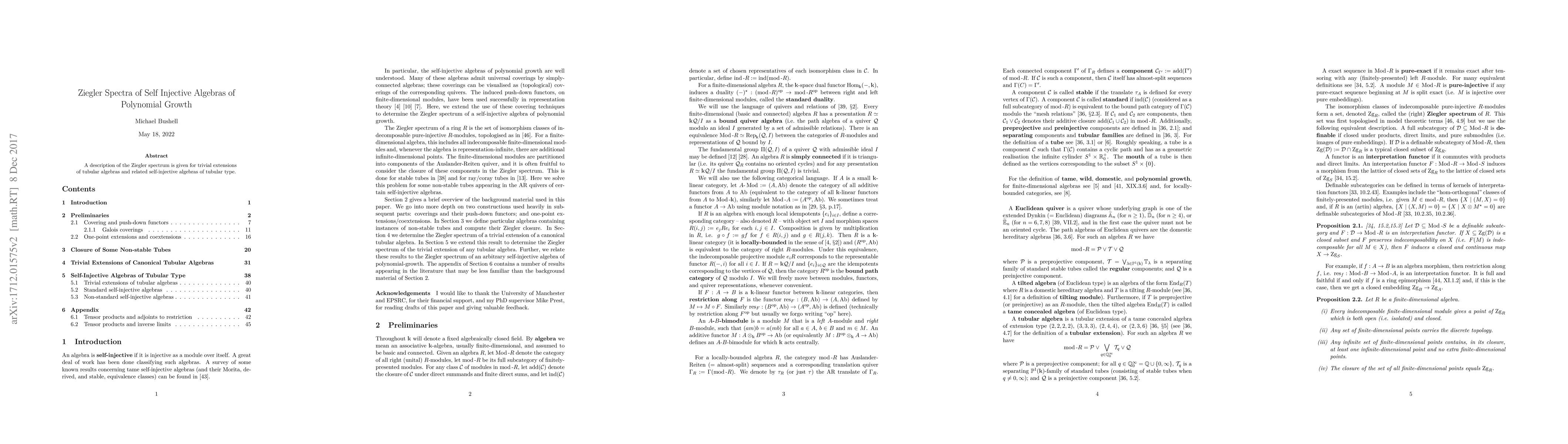 The paper describes the Ziegler spectrum for trivial extensions of tubular algebras, a concept related to self-injective algebras with polynomial growth.