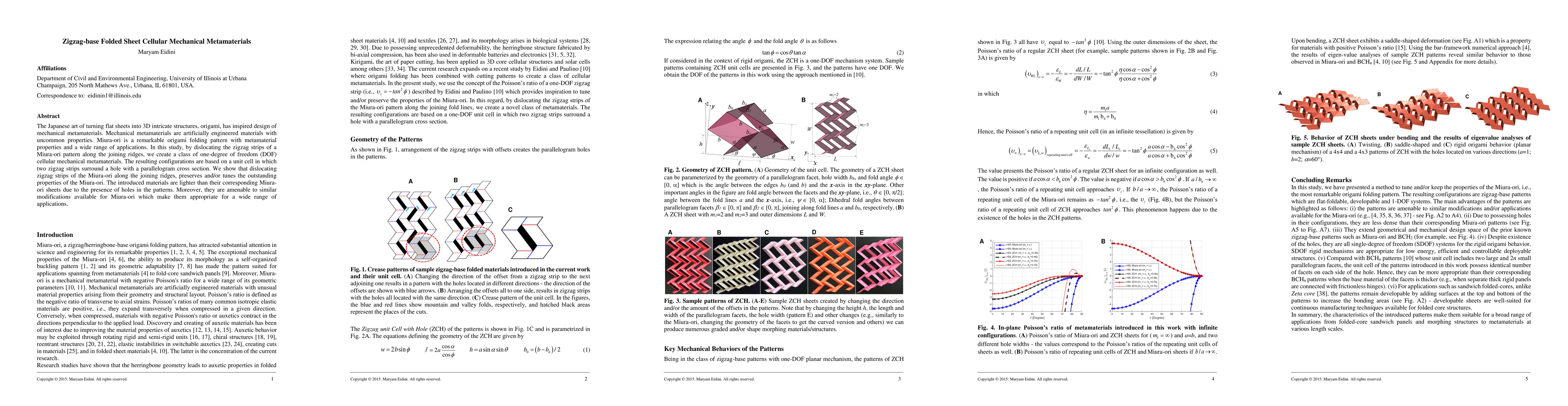 This study designs a class of lightweight, one-degree of freedom cellular mechanical metamaterials inspired by the Miura-ori origami pattern. By dislocating zigzag strips along joining ridges, the researchers create materials that retain or enhance Miura-ori properties while being suitable for diverse applications.