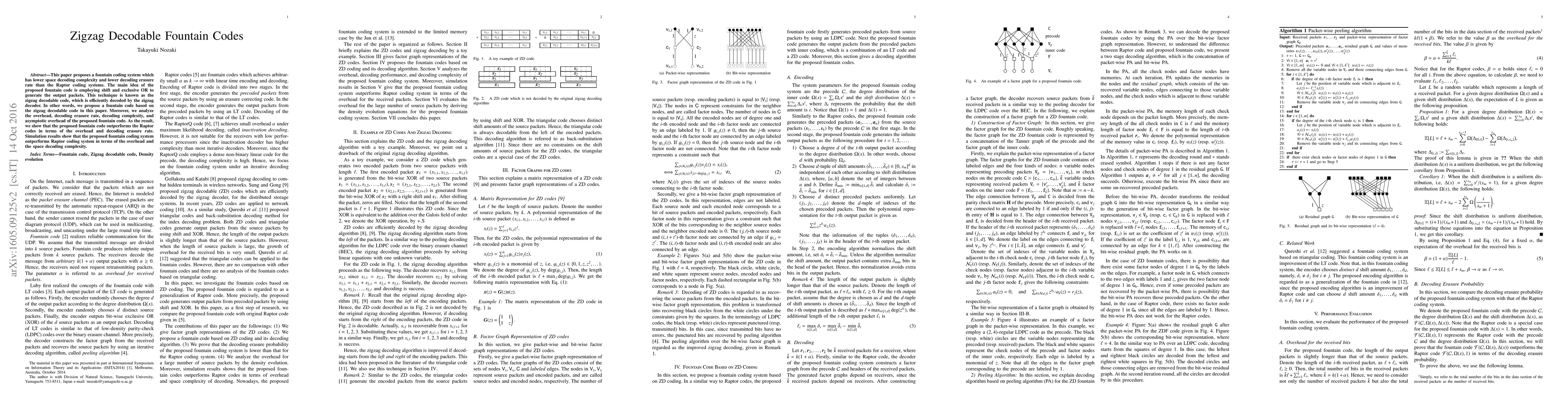 The paper presents zigzag decodable fountain codes and their efficient decoding algorithm, along with a system of density evolution equations for analyzing asymptotic overhead.
