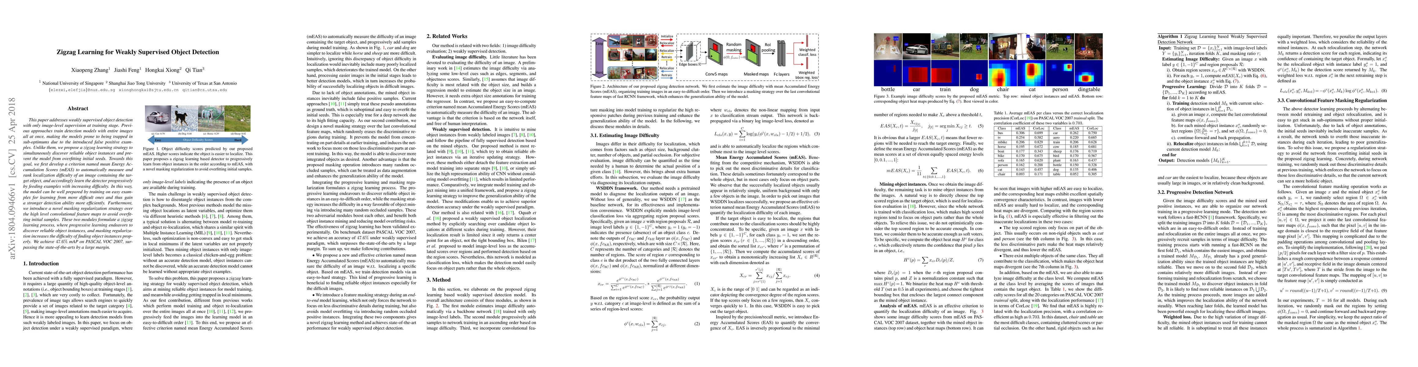 This paper proposes a zigzag learning strategy for weakly supervised object detection to improve detection ability with only image-level supervision. It achieves 47.6% mAP on PASCAL VOC 2007, surpassing the state-of-the-art by a large margin.