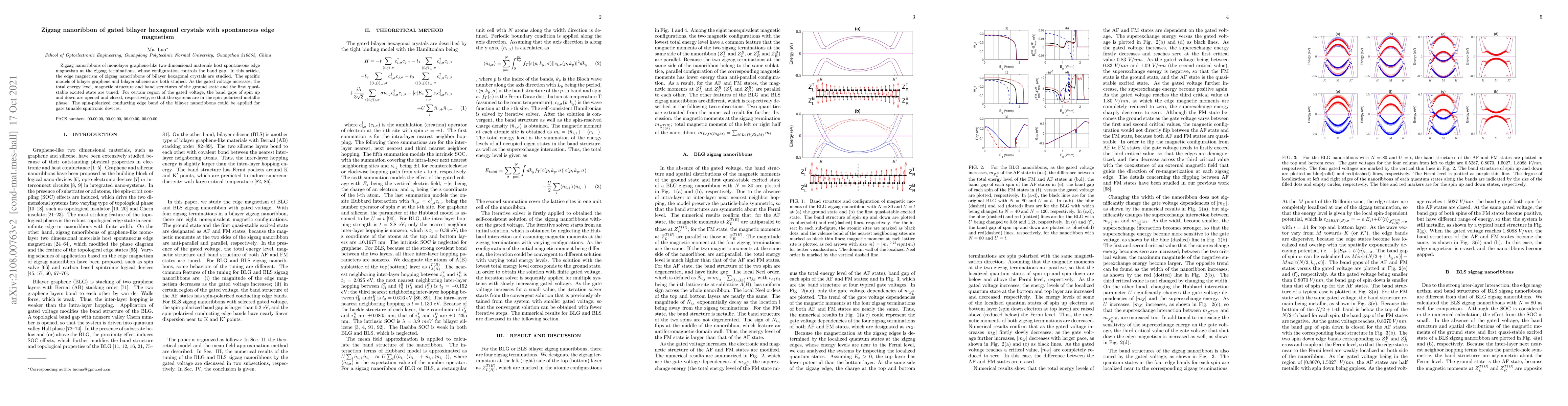 This study investigates zigzag nanoribbons of bilayer hexagonal crystals (like bilayer graphene and silicene) showing spontaneous edge magnetism. The research reveals that increasing gated voltage tunes the energy levels, magnetic structures, and band gaps, leading to spin-polarized metallic phases, potentially useful for gate-tunable spintronic devices.