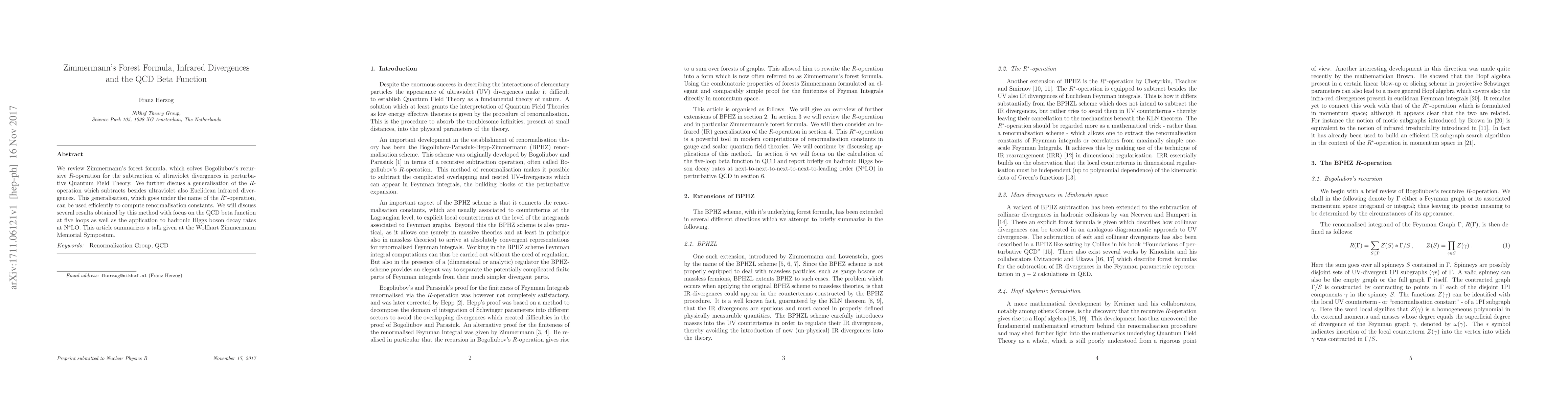 This paper reviews Zimmermann's forest formula for UV divergence subtraction, introduces an R*-operation for both UV and Euclidean IR divergences, and presents applications in calculating the QCD beta function at five loops and hadronic Higgs decay rates at N^4LO.