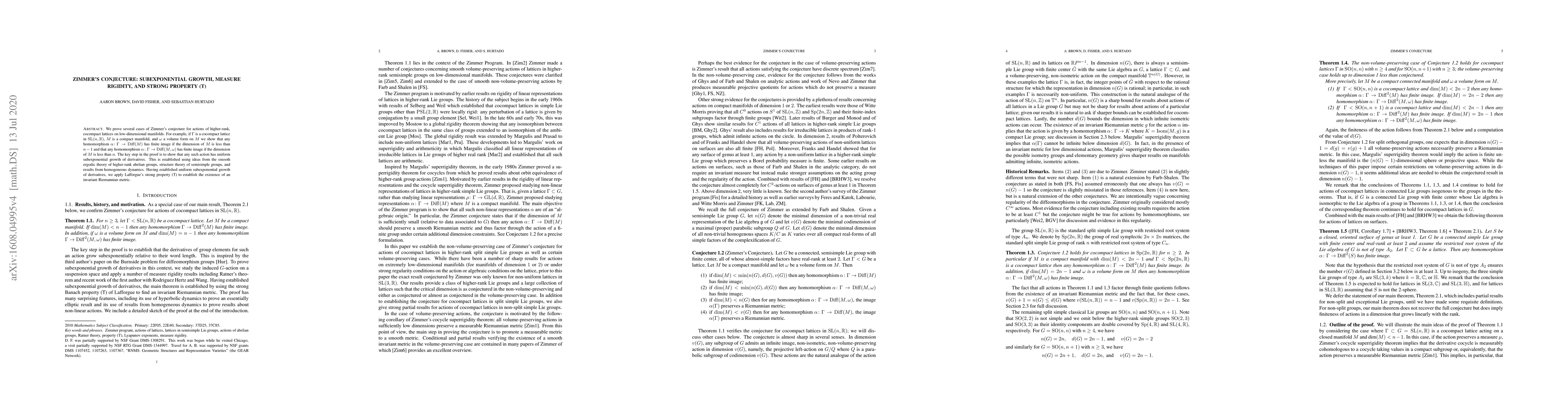 This paper proves specific cases of Zimmer's conjecture regarding the finite image of homomorphisms from cocompact lattices in $\mathrm{Sl}(n, \mathbb R)$ into the diffeomorphism groups of low-dimensional manifolds. The proof leverages uniform subexponential growth of derivatives and applies Lafforgue's strong property (T) to establish measure rigidity.