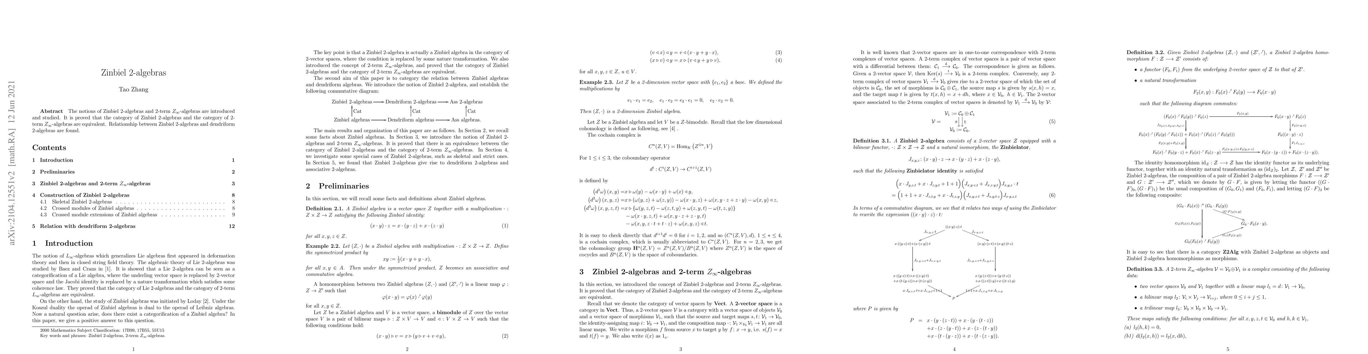 This paper introduces Zinbiel 2-algebras and 2-term $Z_{\infty}$-algebras, proving their equivalence. It also explores crossed module extensions of Zinbiel algebras and establishes a relationship between Zinbiel 2-algebras and dendriform 2-algebras.