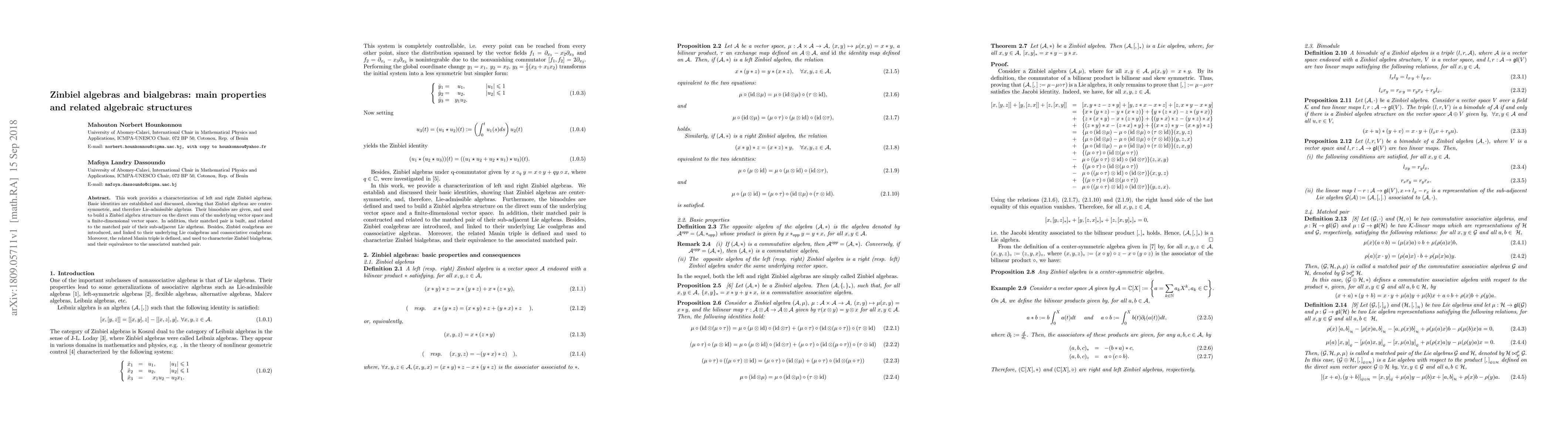 This work provides a characterization of left and right Zinbiel algebras.Basic identities are established and discussed, showing that Zinbiel algebras are center-symmetric, and therefore Lie-admissible algebras. Their bimodules are given, and used to build a Zinbiel algebra structure on the direct sum of the underlying vector space and a finite-dimensional vector space. In addition, their matched pair is built, and related to the matched pair of their sub-adjacent Lie algebras. Besides, Zinbiel coalgebras are introduced, and linked to their underlying Lie coalgebras and coassociative coalgebras. Moreover, the related Manin triple is defined, and used to characterize Zinbiel bialgebras, and their equivalence to the associated matched pair.