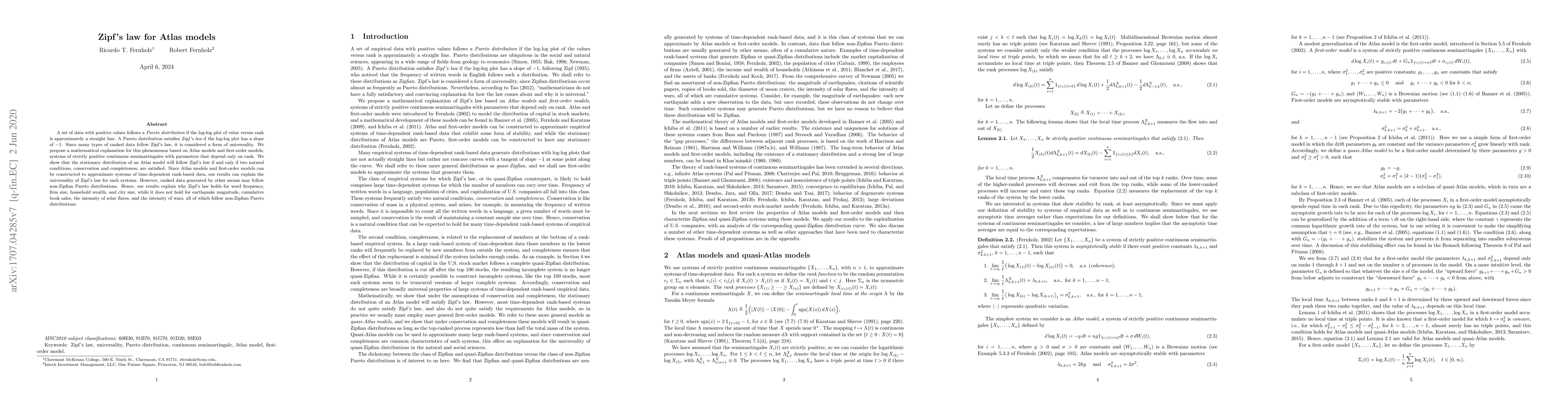 The research uses Atlas models and first-order models to explain Zipf's law for ranked data.
