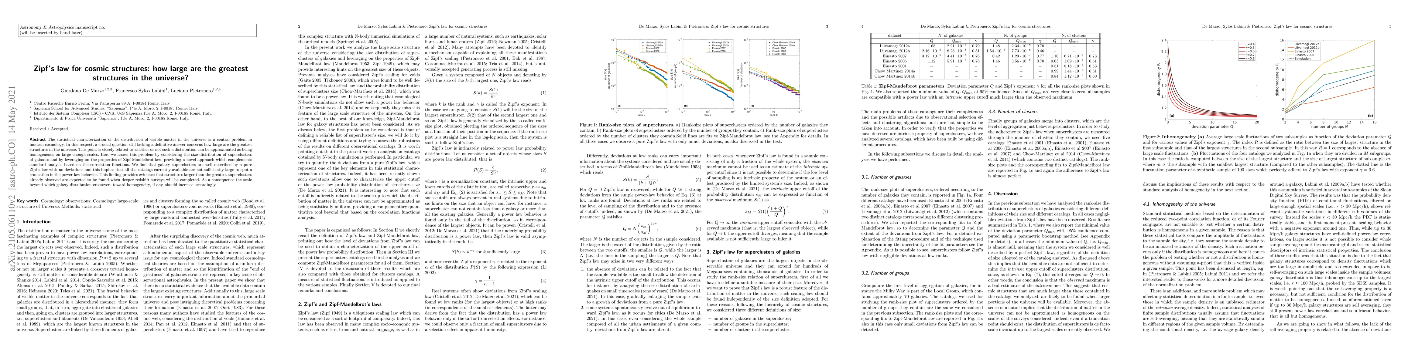The statistical characterization of the distribution of visible matter in the universe is a central problem in modern cosmology. In this respect, a crucial question still lacking a definitive answer concerns how large are the greatest structures in the universe. This point is closely related to whether or not such a distribution can be approximated as being homogeneous on large enough scales. Here we assess this problem by considering the size distribution of superclusters of galaxies and by leveraging on the properties of Zipf-Mandelbrot law, providing a novel approach which complements standard analysis based on the correlation functions. We find that galaxy superclusters are well described by a pure Zipf's law with no deviations and this implies that all the catalogs currently available are not sufficiently large to spot a truncation in the power-law behavior. This finding provides evidence that structures larger than the greatest superclusters already observed are expected to be found when deeper redshift surveys will be completed. As a consequence the scale beyond which galaxy distribution crossovers toward homogeneity, if any, should increase accordingly