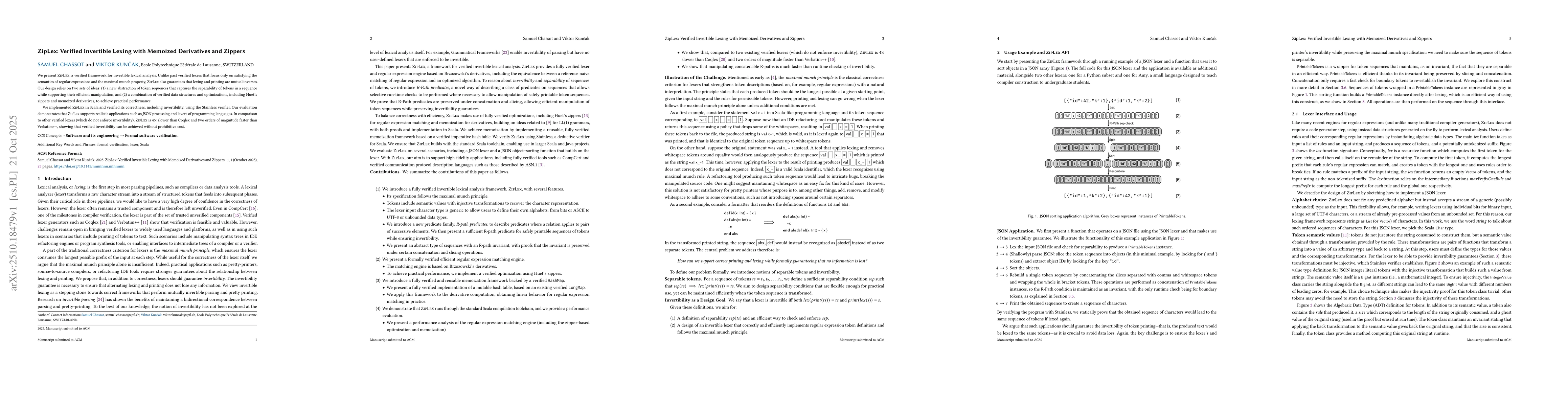 Development of a formally verified, invertible lexer framework that combines Brzozowski's derivatives, zipper data structures, and memoization for efficient regular expression matching.
