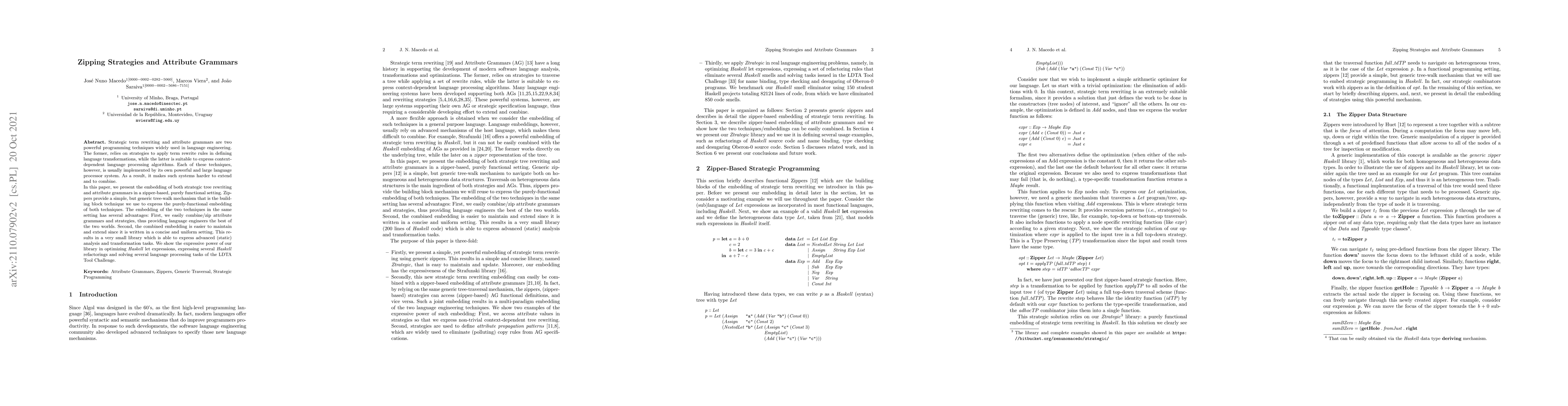 This paper embeds strategic term rewriting and attribute grammars within a zipper-based, purely functional framework, enabling the combination of both techniques. The unified approach facilitates easier maintenance, extension, and application of advanced language processing tasks.