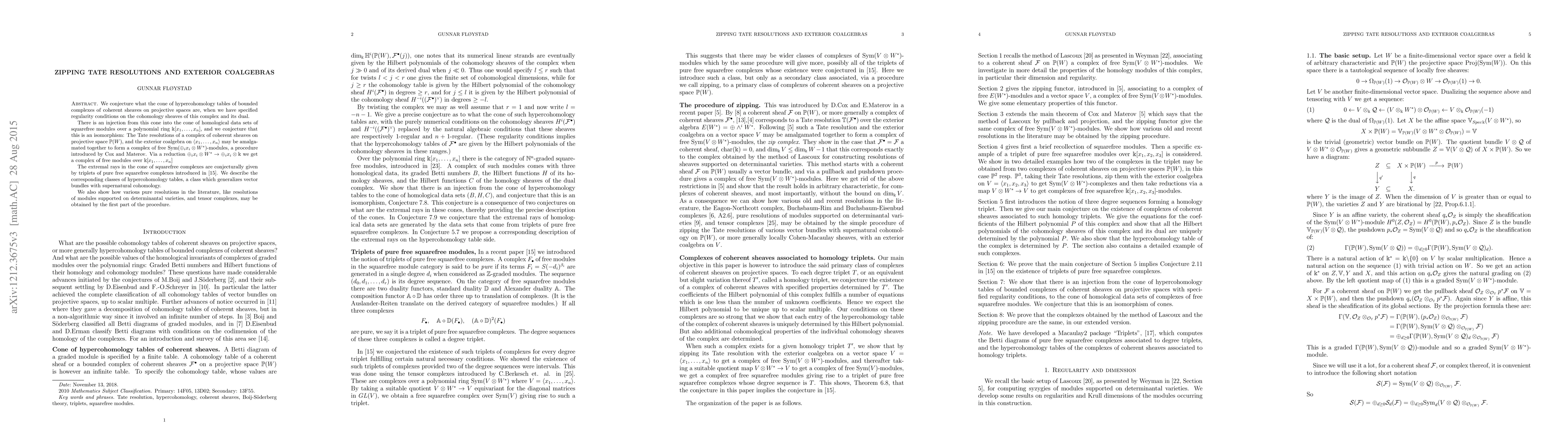 This paper conjectures the structure of hypercohomology tables for bounded complexes of coherent sheaves on projective spaces under specified regularity conditions. It proposes an isomorphism between these tables and homological data sets of squarefree modules over a polynomial ring, suggesting a connection between Tate resolutions and exterior coalgebras via a complex of free modules.